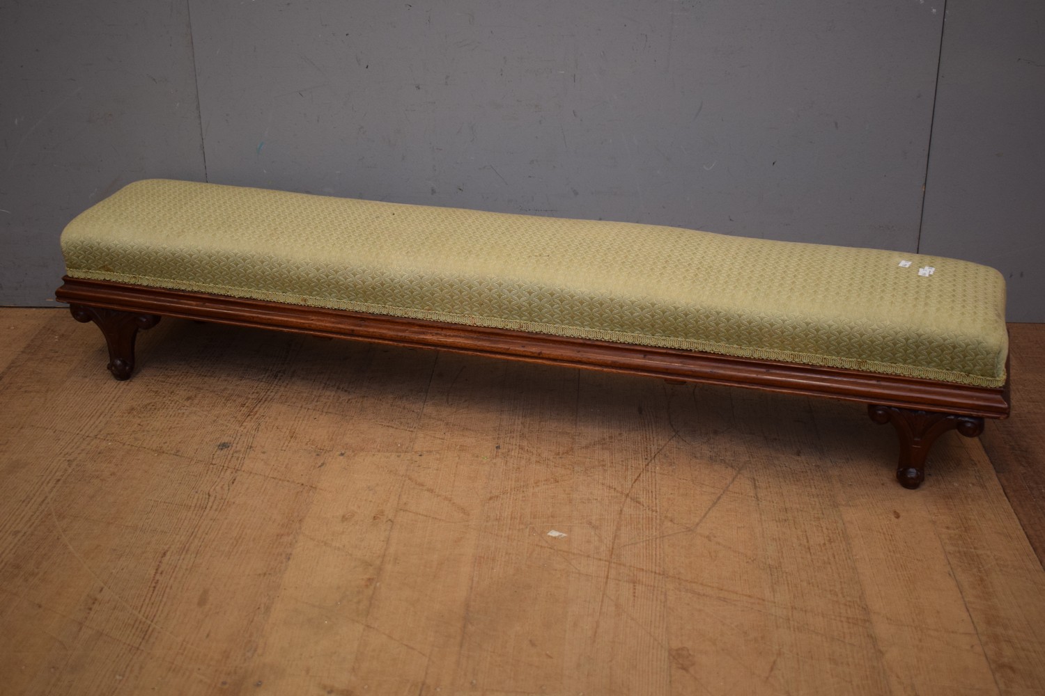A VICTORIAN UPHOLSTERED LONG FOOTSTOOL (A/F) ( 21H X 130W X 25D CM) (LEONARD JOEL DELIVERY SIZE: MEDIUM)