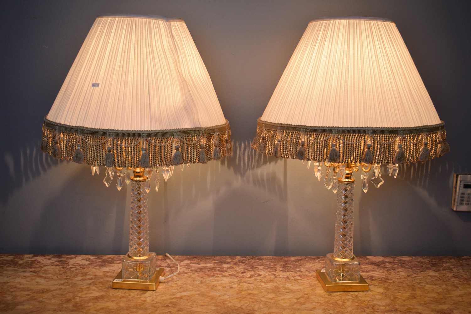 A PAIR OF DECORATIVE GLASS TABLE LAMPS WITH DROPLETS (A/F) (80H x 58D CM) (LEONARD JOEL DELIVERY SIZE: LARGE)