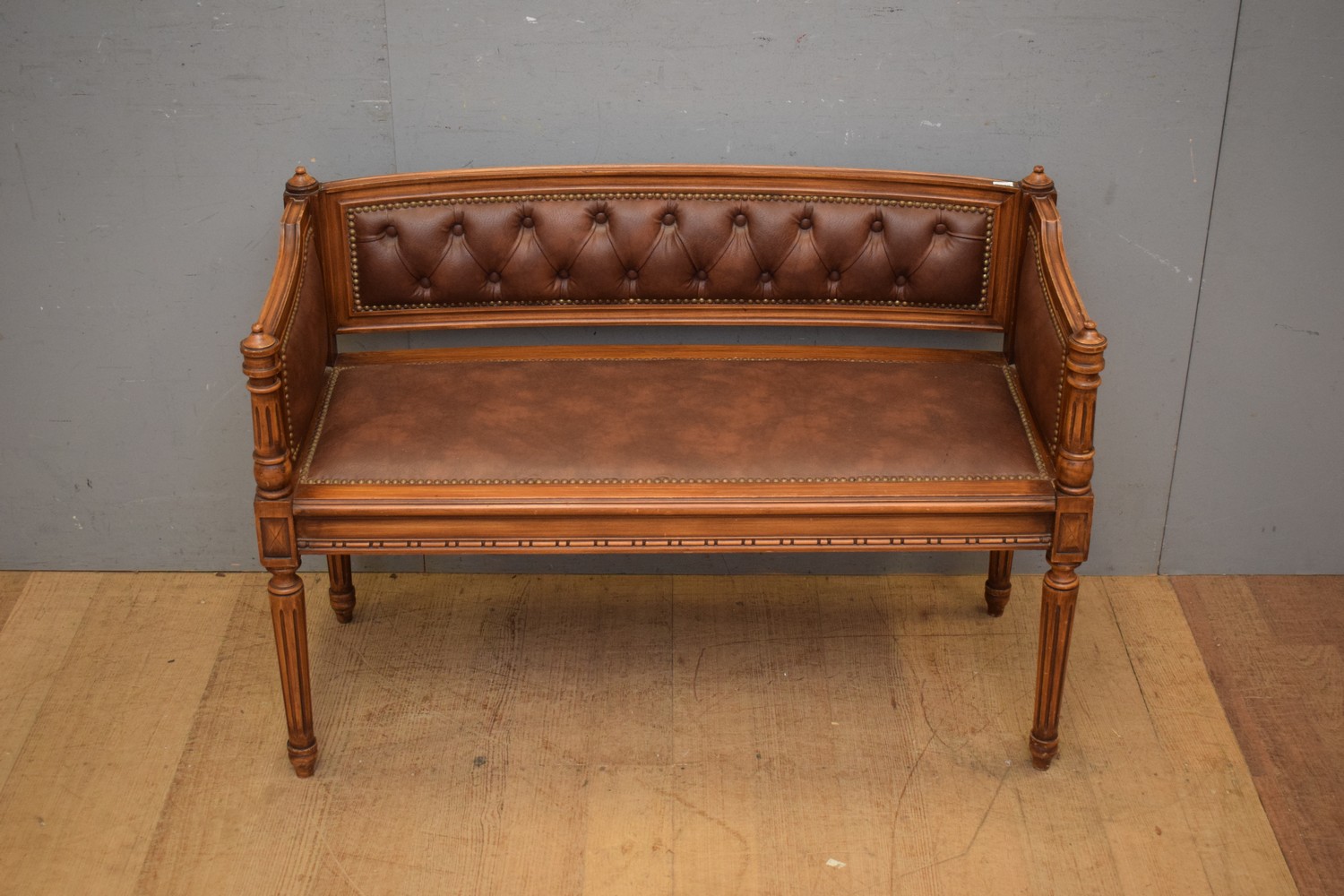 A LEATHER AND STUDDED HALL SEAT ON TURNED LEGS (68H x 100W x 40D CM) (LEONARD JOEL DELIVERY SIZE: LARGE)