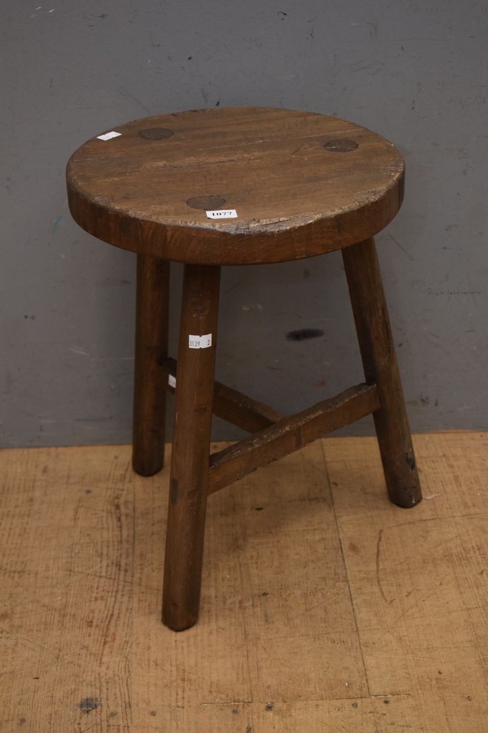 AN OAK FRENCH FARMHOUSE STYLE MILKING STOOL (41H x 35D CM) (LEONARD JOEL DELIVERY SIZE: MEDIUM)