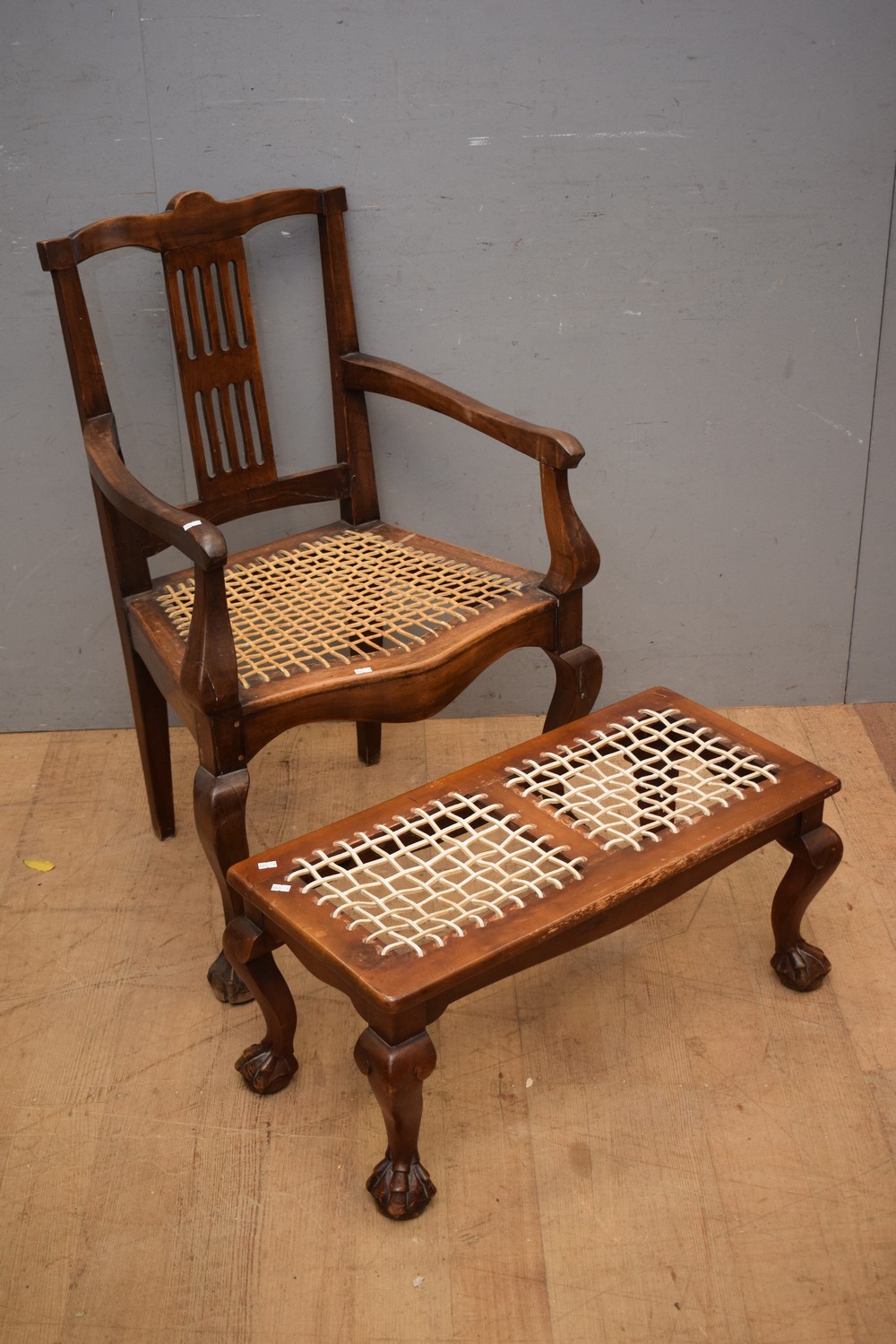 A TIMBER CARVER AND FOOT STOOL WITH SOUTH AFRICAN WEAVE (A/F) ( 96H X 61W X 58D CM) (LEONARD JOEL DELIVERY SIZE: LARGE)