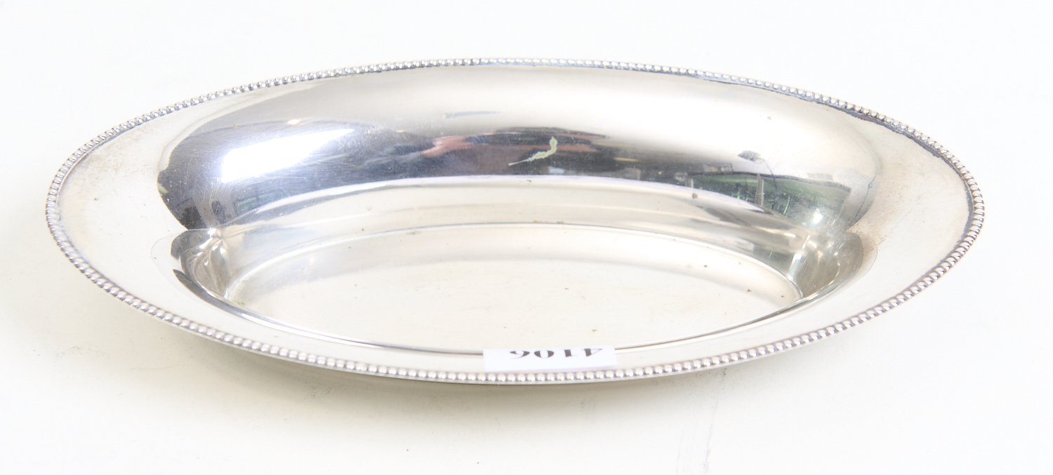 AN 800 SILVER BONBON DISH, OVAL WITH BEADED RIM L.18.5CM, 69G, LEONARD JOEL LOCAL DELIVERY SIZE: SMALL