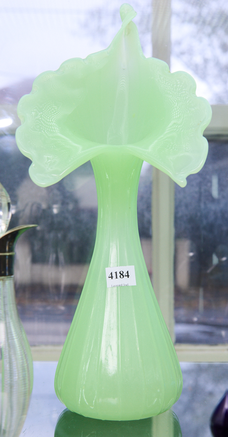 A GREEN MILK GLASS TRUMPET VASE H.36.5, LEONARD JOEL LOCAL DELIVERY SIZE: SMALL