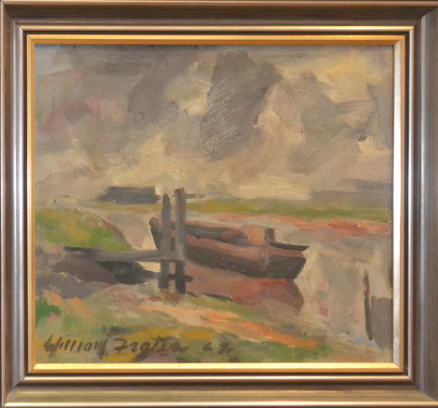 WILLIAM FRATER, LAKE SCENE (DOUBLE SIDED), OIL ON BOARD, 42 X 49CM