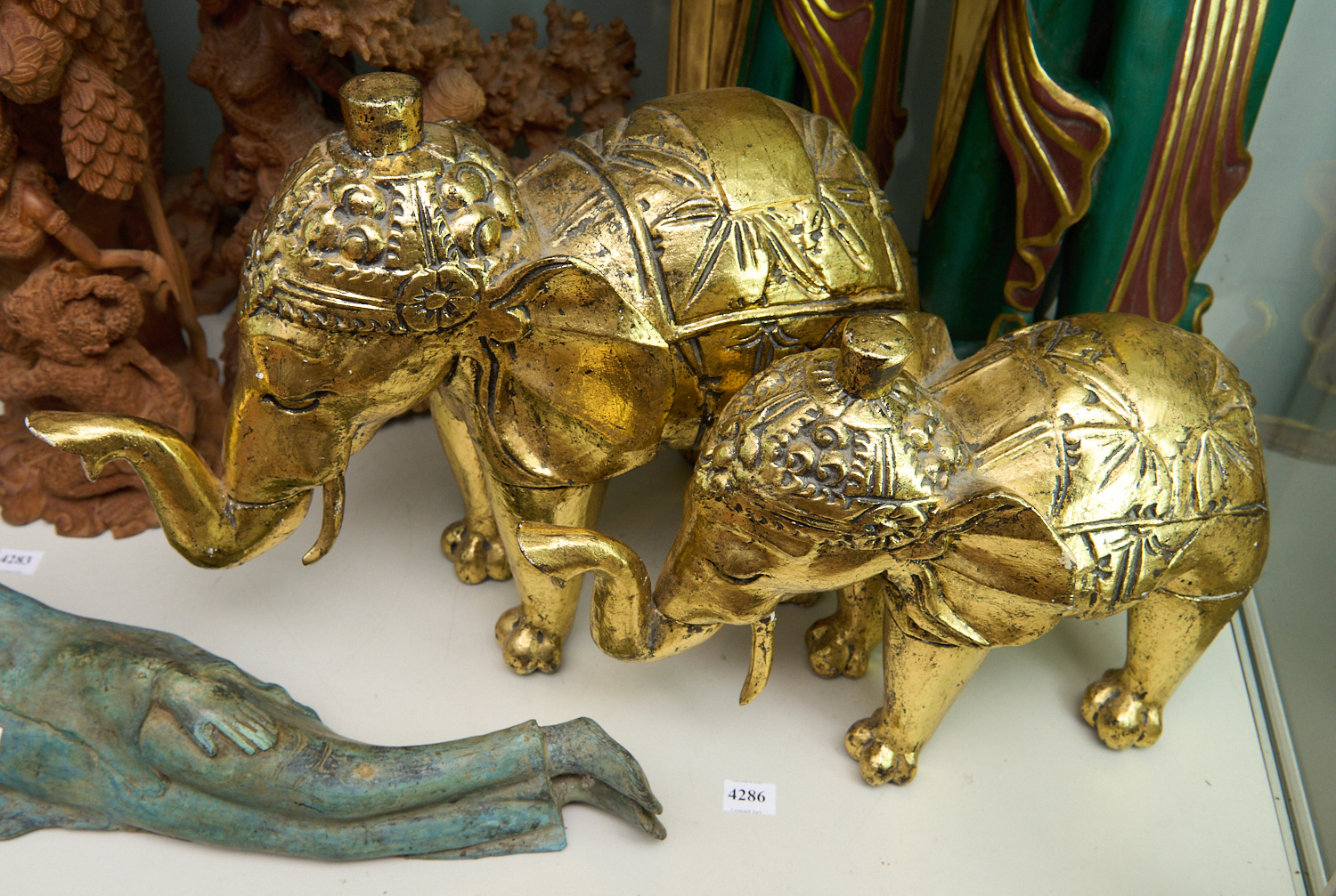 A PAIR OF GILTWOOD ELEPHANTS H.33CM, LEONARD JOEL LOCAL DELIVERY SIZE: SMALL