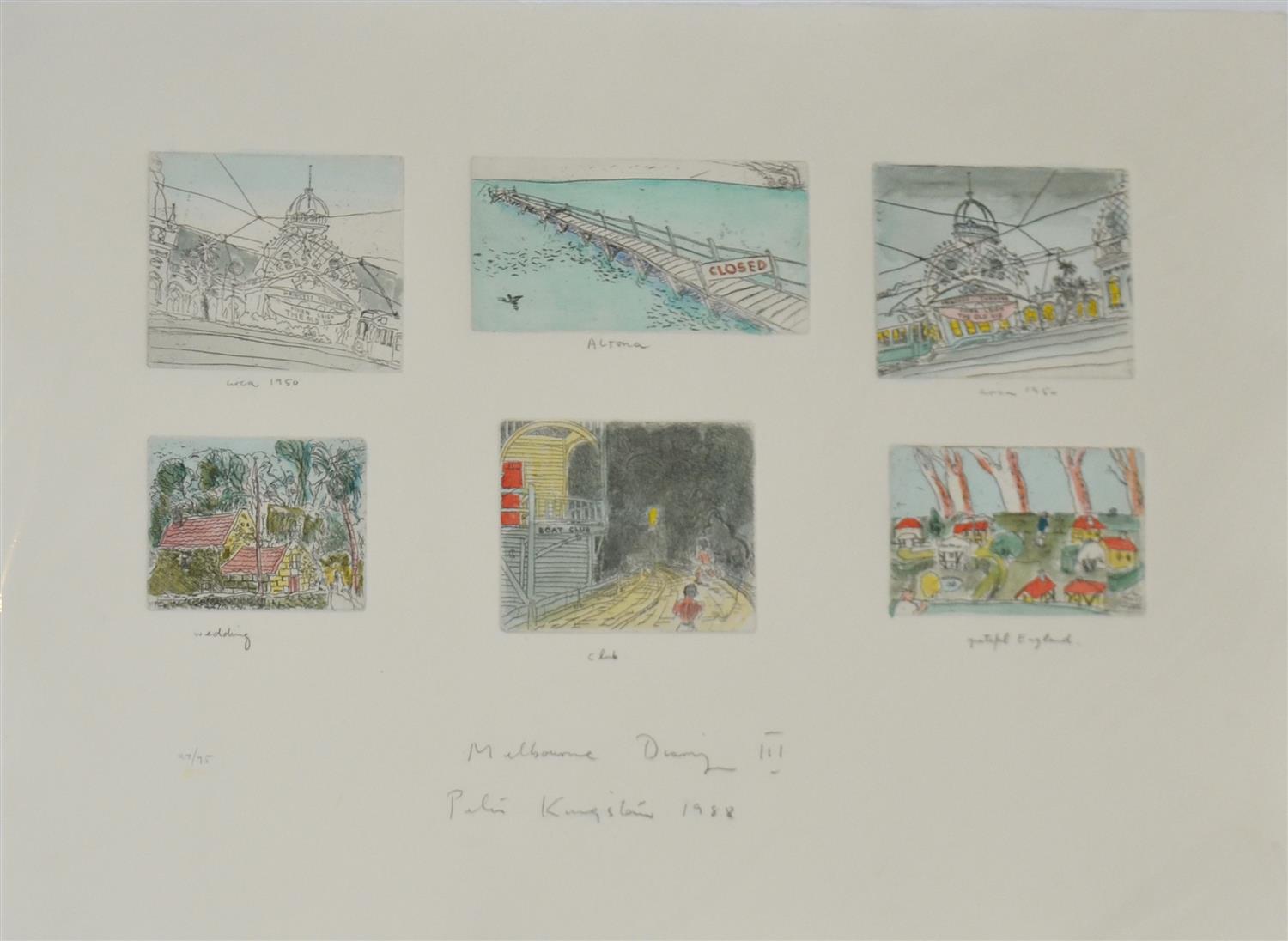 PETER KINGSTON, MELBOURNE DIARY III 1988, ETCHING 27/75, 56 X 76CM (SHEET), CONDITION: VERY GOOD, THIS WORK IS UNFRAMED HOWEVER BACKED AND WRAPPED IN PLASTIC