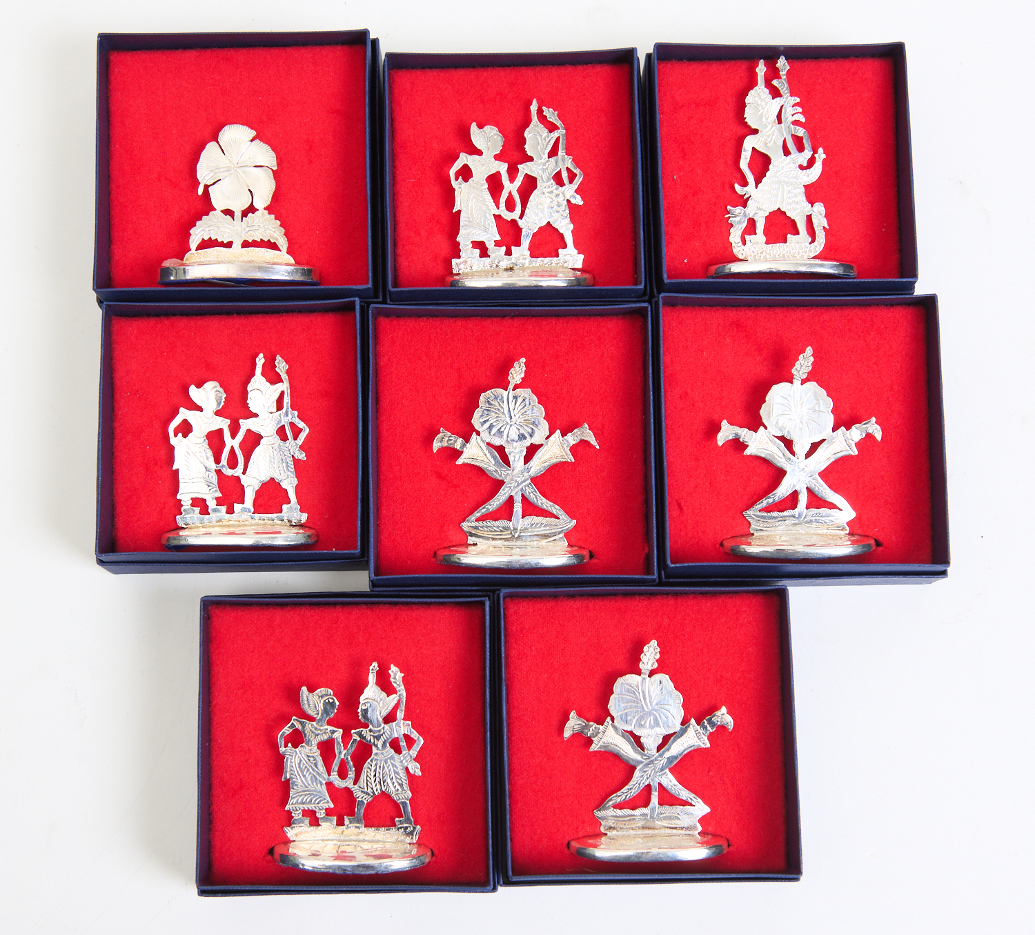 A SET OF EIGHT SILVER PLACE CARD HOLDERS H.6.5CM, LEONARD JOEL LOCAL DELIVERY SIZE: SMALL