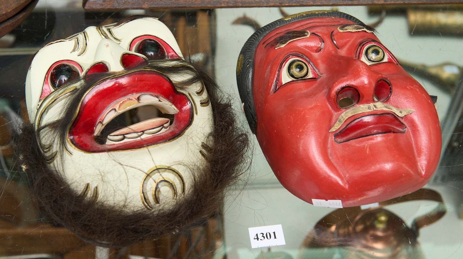 TWO BALINESE POLYCHROME MASKS H.20CM, LEONARD JOEL LOCAL DELIVERY SIZE: SMALL