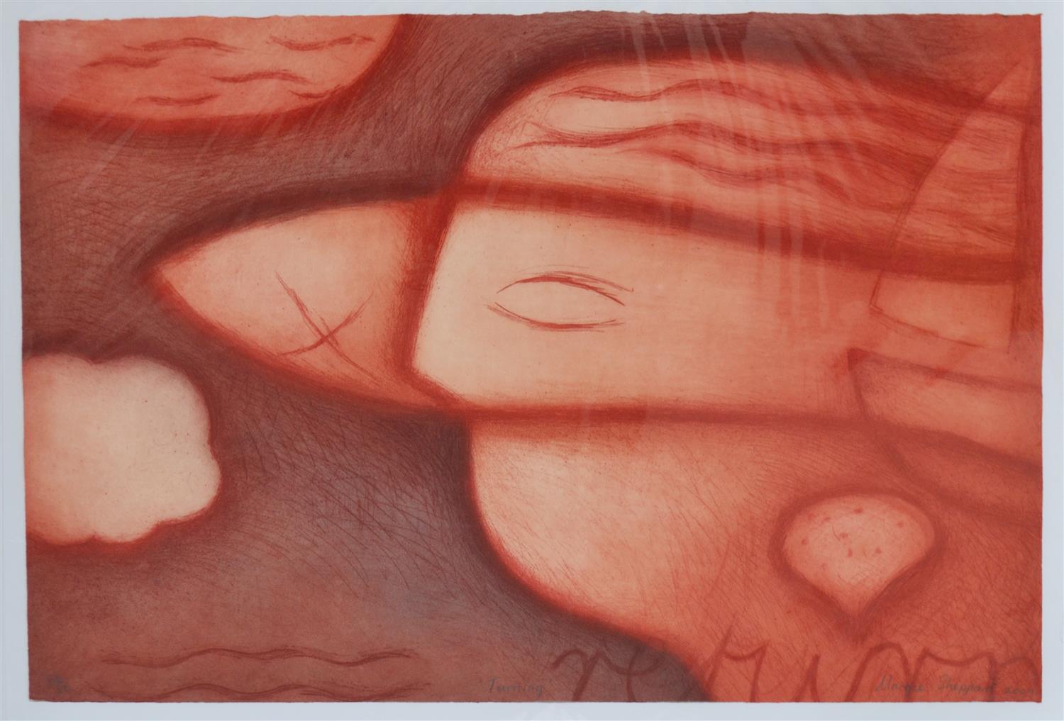 MARGIE SHEPPARD, TURNING 2004, ETCHING 32/50, 52 X 75CM, CONDITION: VERY GOOD, THIS WORK IS UNFRAMED HOWEVER BACKED AND WRAPPED IN PLASTIC