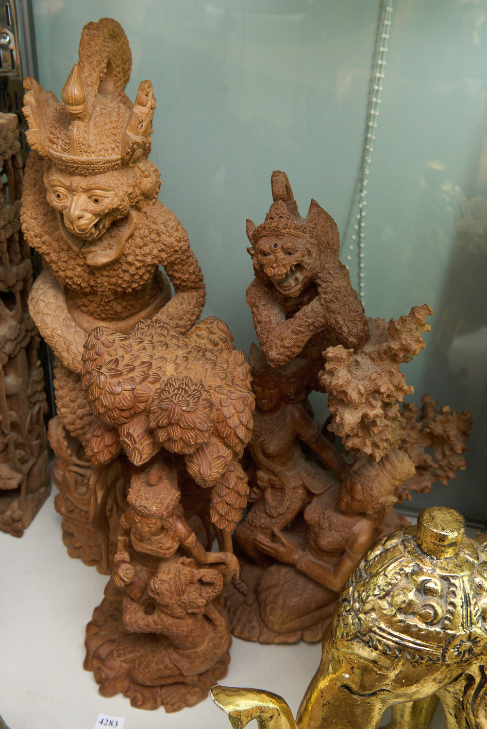 A GROUP OF BALINESE WOODEN CARVINGS (LARGEST 59 CM H), LEONARD JOEL LOCAL DELIVERY SIZE: SMALL