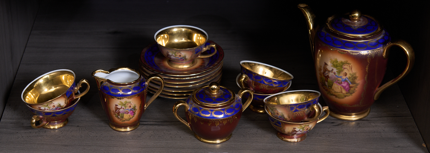 A WEST GERMAN REMBRANDT TEA SET (A/F), LEONARD JOEL LOCAL DELIVERY SIZE: SMALL