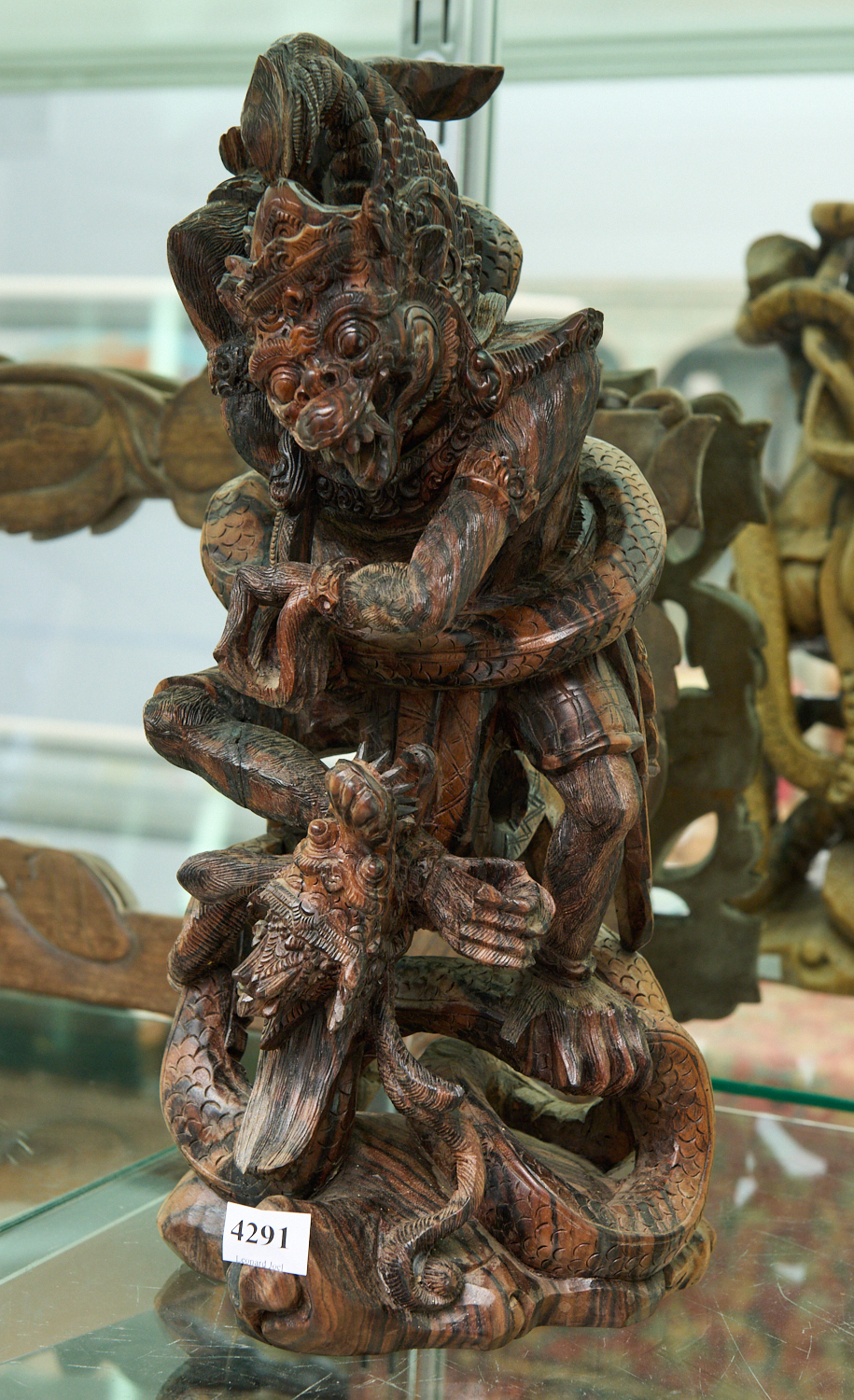 A BALINESE WOODEN CARVING H.39CM, LEONARD JOEL LOCAL DELIVERY SIZE: SMALL