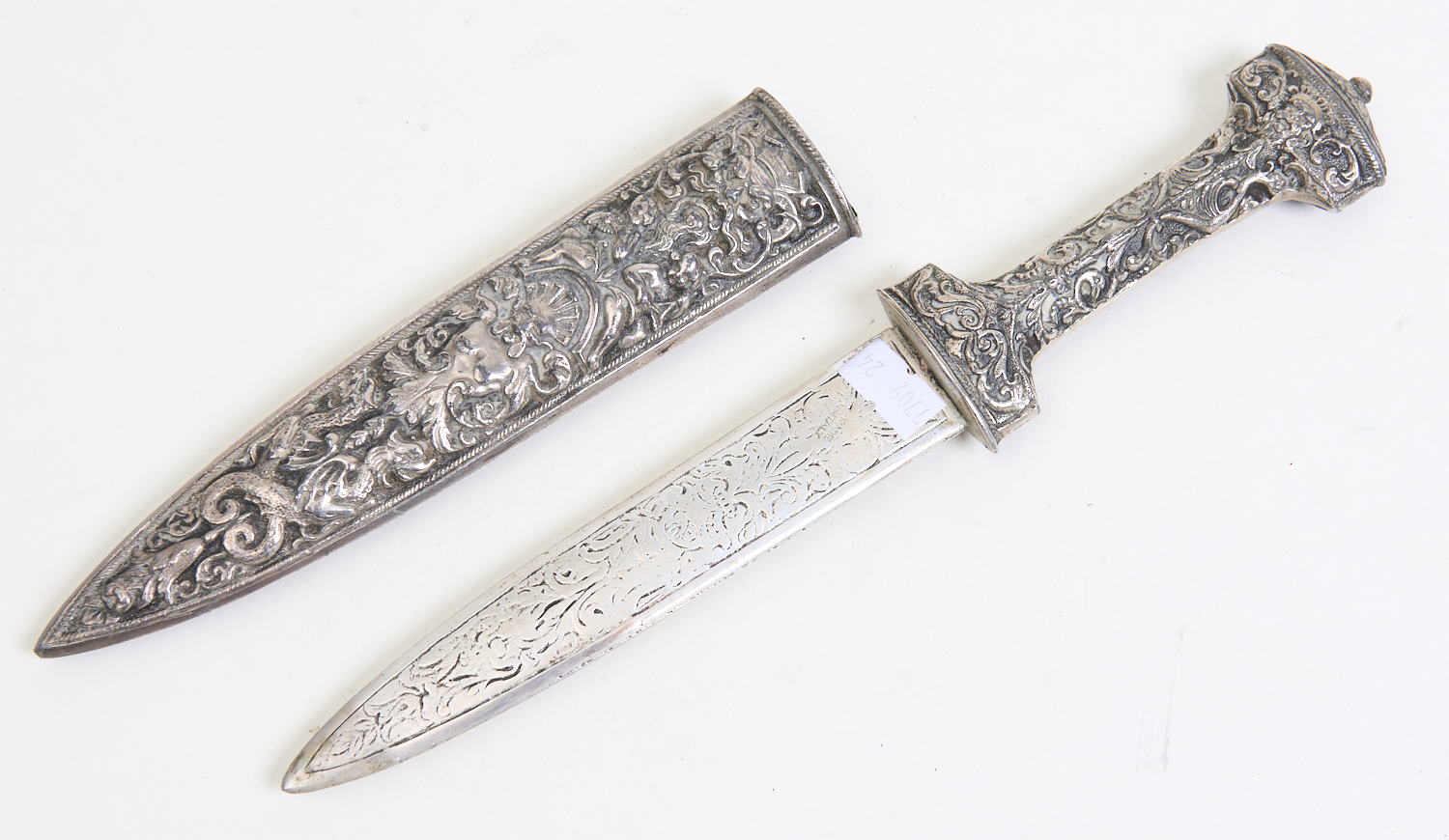A HEAVILY EMBOSSED ITALIAN LETTER OPENER L.31CM, LEONARD JOEL LOCAL DELIVERY SIZE: SMALL