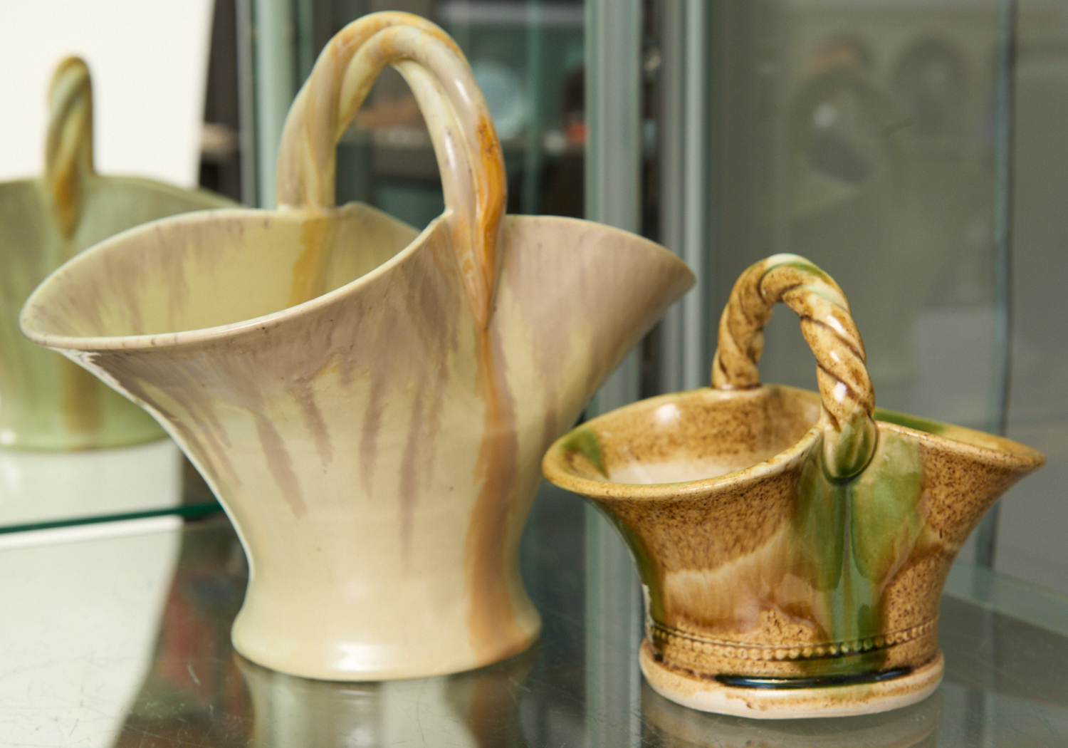 A REMUED POTTERY BASKET TOGETHER WITH ANOTHER SIMILAR, LEONARD JOEL LOCAL DELIVERY SIZE: SMALL