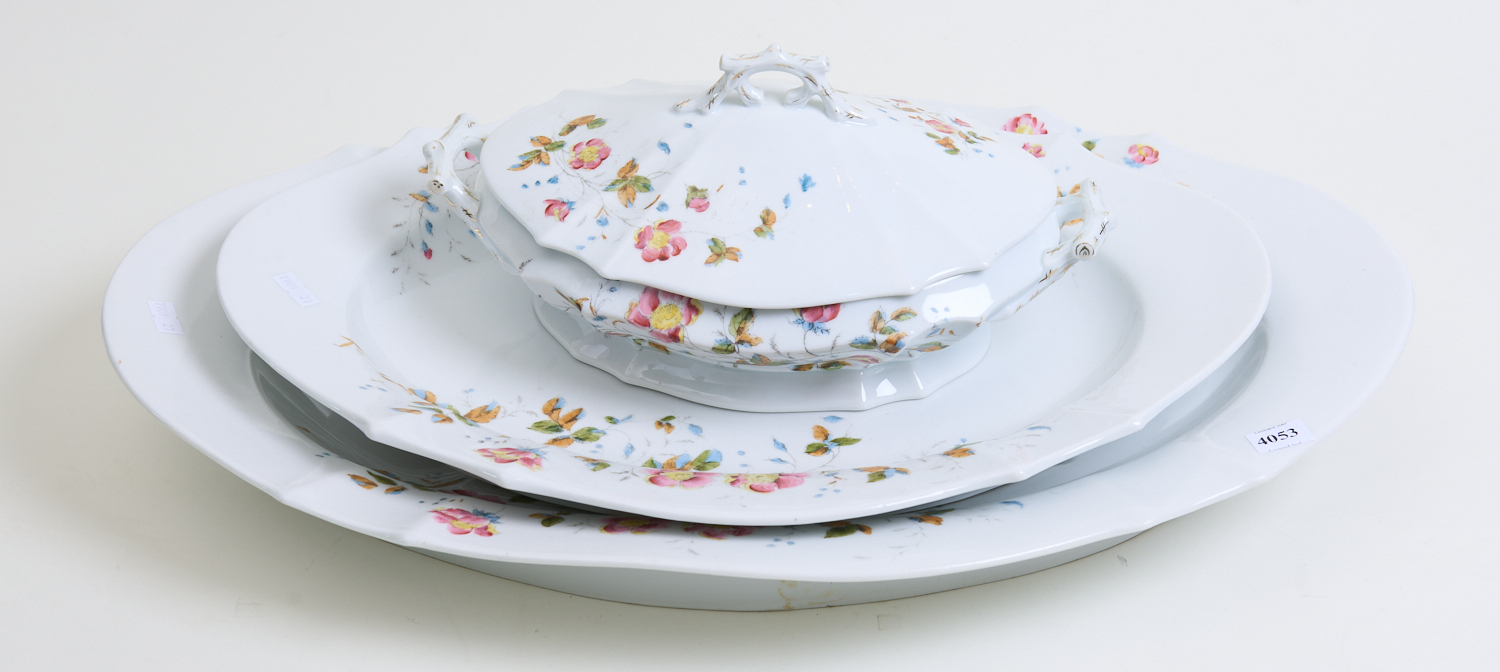 A PORCELAIN TUREEN, PLATTER AND MEAT DISH, LEONARD JOEL LOCAL DELIVERY SIZE: SMALL