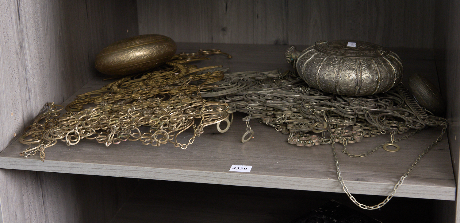 TWO ASIAN METAL FILIGREE WALL HANGINGS TOGETHER WITH CIRCULAR BOXES, LEONARD JOEL LOCAL DELIVERY SIZE: SMALL