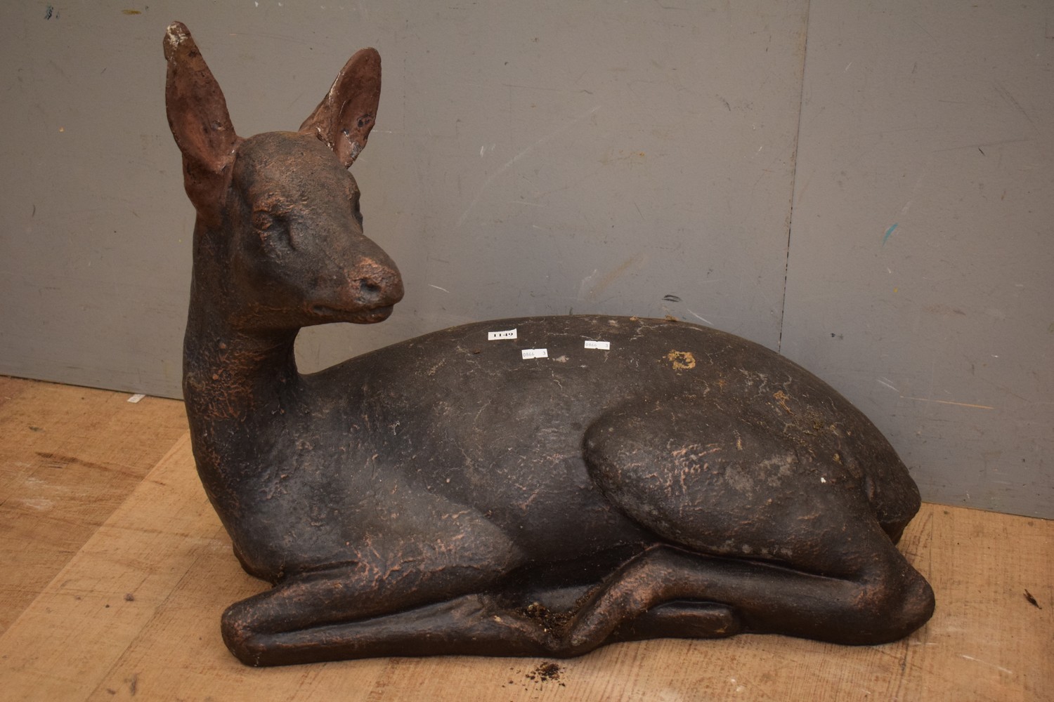 A SOLID CAST IRON DEER (A/F) (52H x 67W x 31D CM) (PLEASE NOTE THIS HEAVY ITEM MUST BE REMOVED BY CARRIERS AT THE CUSTOMER'S EXPENSE. LEONARD JOEL STAFF CANNOT ASSIST CARRYING THIS ITEM) (X-LARGE ITEM)