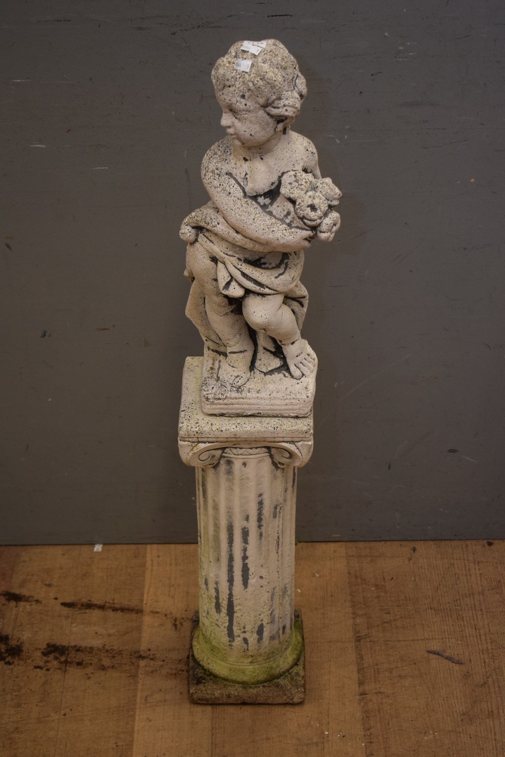 A CLASSICAL FIGURE ON COLUMN BASE (98H CM) (PLEASE NOTE THIS HEAVY ITEM MUST BE REMOVED BY CARRIERS AT THE CUSTOMER'S EXPENSE. LEONARD JOEL STAFF CANNOT ASSIST CARRYING THIS ITEM) (X-LARGE ITEM)