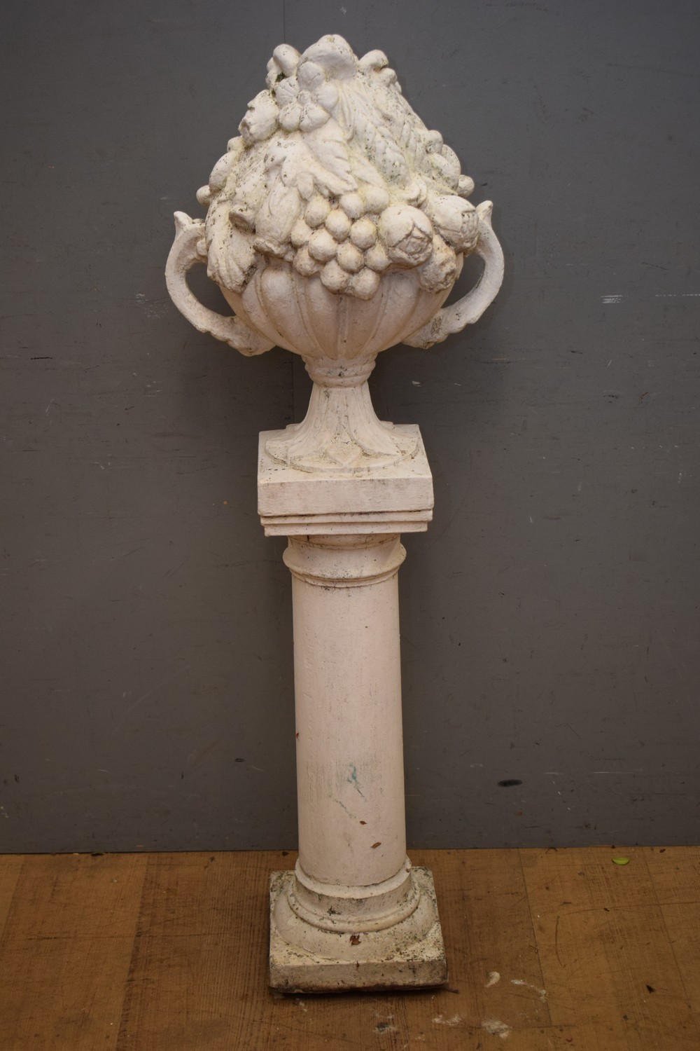 A DECORATIVE CLASSICAL STYLE CONCRETE STATUE ON PLINTH (A/F) (138H x 43D CM) (PLEASE NOTE THIS HEAVY ITEM MUST BE REMOVED BY CARRIERS AT THE CUSTOMER'S EXPENSE. LEONARD JOEL STAFF CANNOT ASSIST CARRYING THIS ITEM) (X-LARGE ITEM)