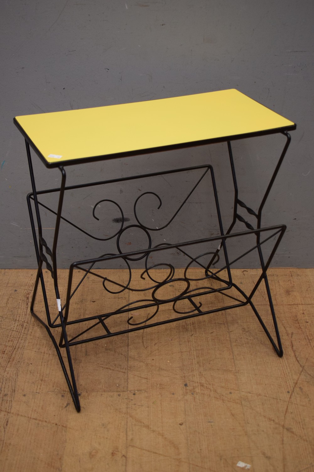 A 1950S WROUGHT IRON LAMINEX MAGAZINE HOLDER/SIDE TABLE (47H x 47W x 32D CM) (LEONARD JOEL DELIVERY SIZE: MEDIUM)