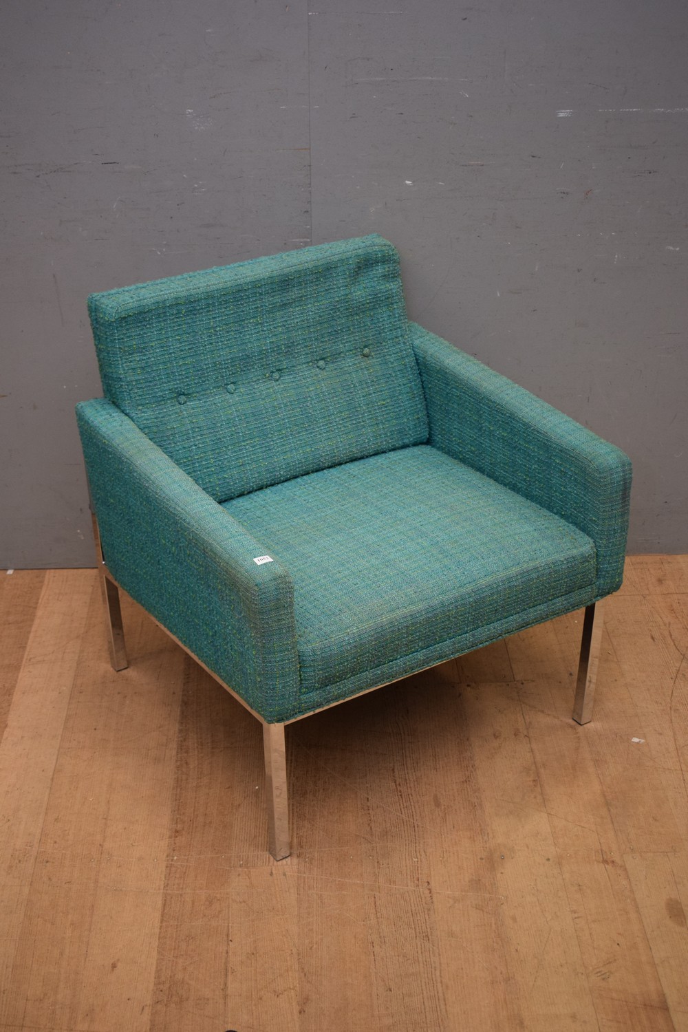 A 1960S UPHOLSTERED ARMCHAIR ON CHROMED STEEL FRAME (78H x 73W x 70D CM) (LEONARD JOEL DELIVERY SIZE: LARGE)