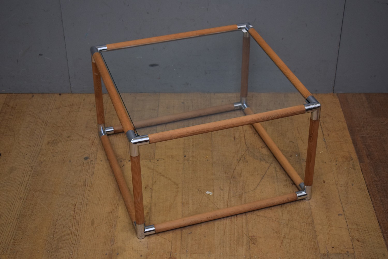 A 1970S GLASS TOPPED COFFEE TABLE (39H x 61W x 61D CM) (LEONARD JOEL DELIVERY SIZE: LARGE)