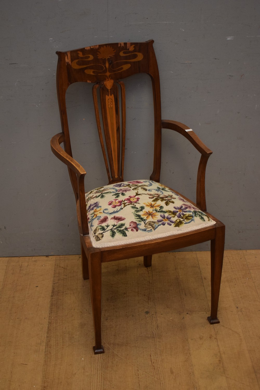 AN ART NOUVEAU CARVER CHAIR (A/F) (100H x 55W x 56D CM) (LEONARD JOEL DELIVERY SIZE: LARGE)