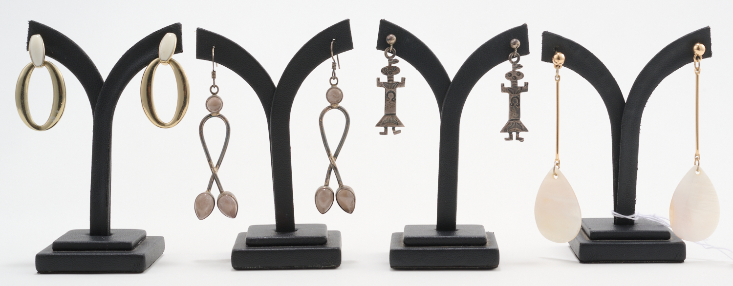 A COLLECTION OF COSTUME EARRINGS, INCLUDING SOME IN STERLING SILVER