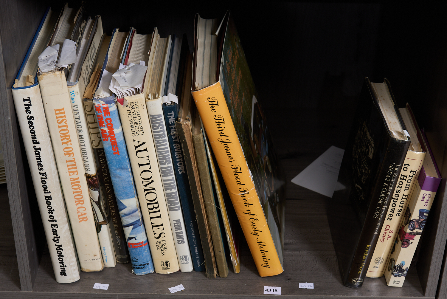 A SHELF OF BOOKS PERTAINING TO CARS, SHIPS AND PLANES, LEONARD JOEL LOCAL DELIVERY SIZE: MEDIUM. The Rodney Permezel Collection