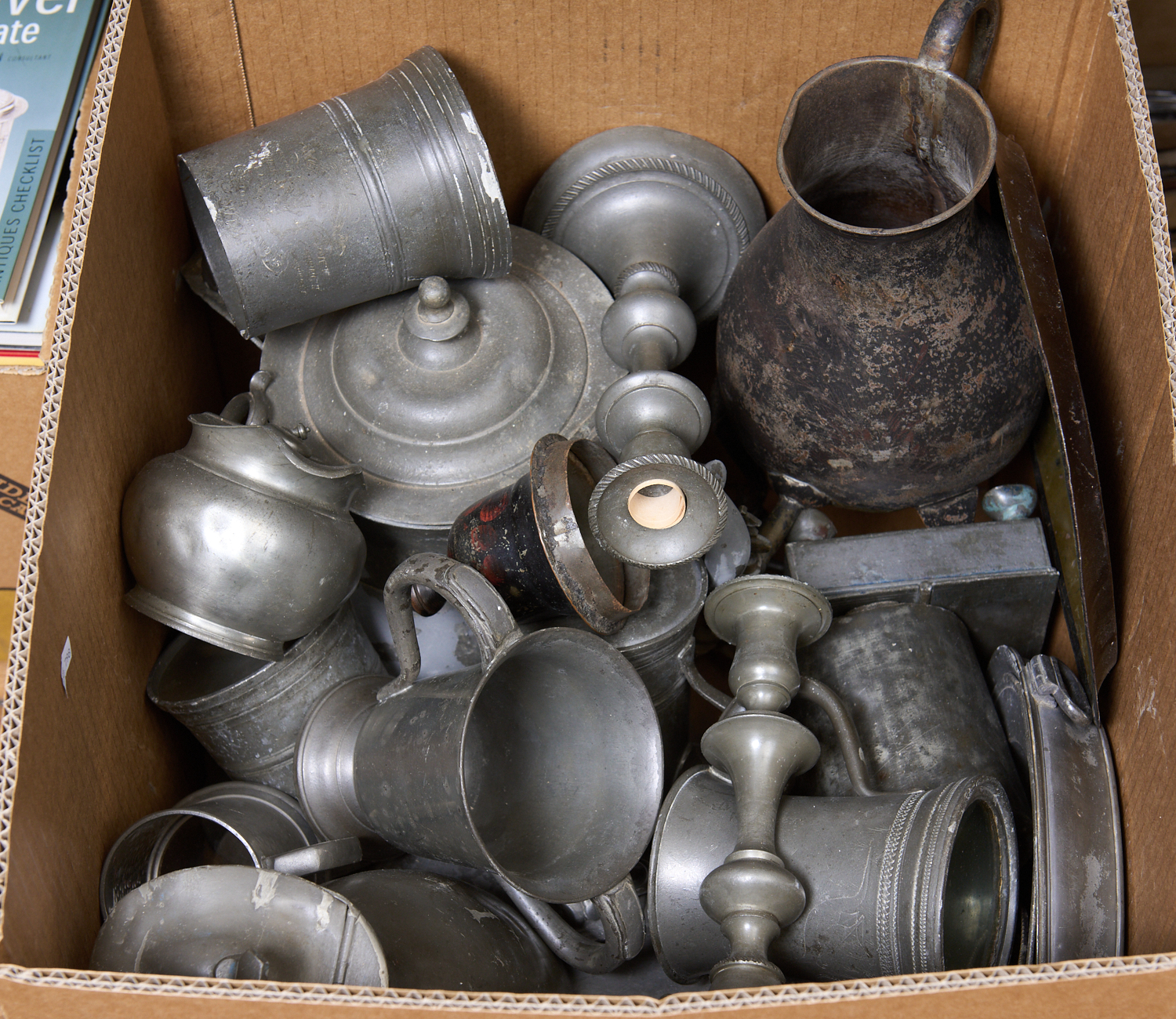 A BOX OF ASSORTED PEWTER, LEONARD JOEL LOCAL DELIVERY SIZE: MEDIUM. The Rodney Permezel Collection