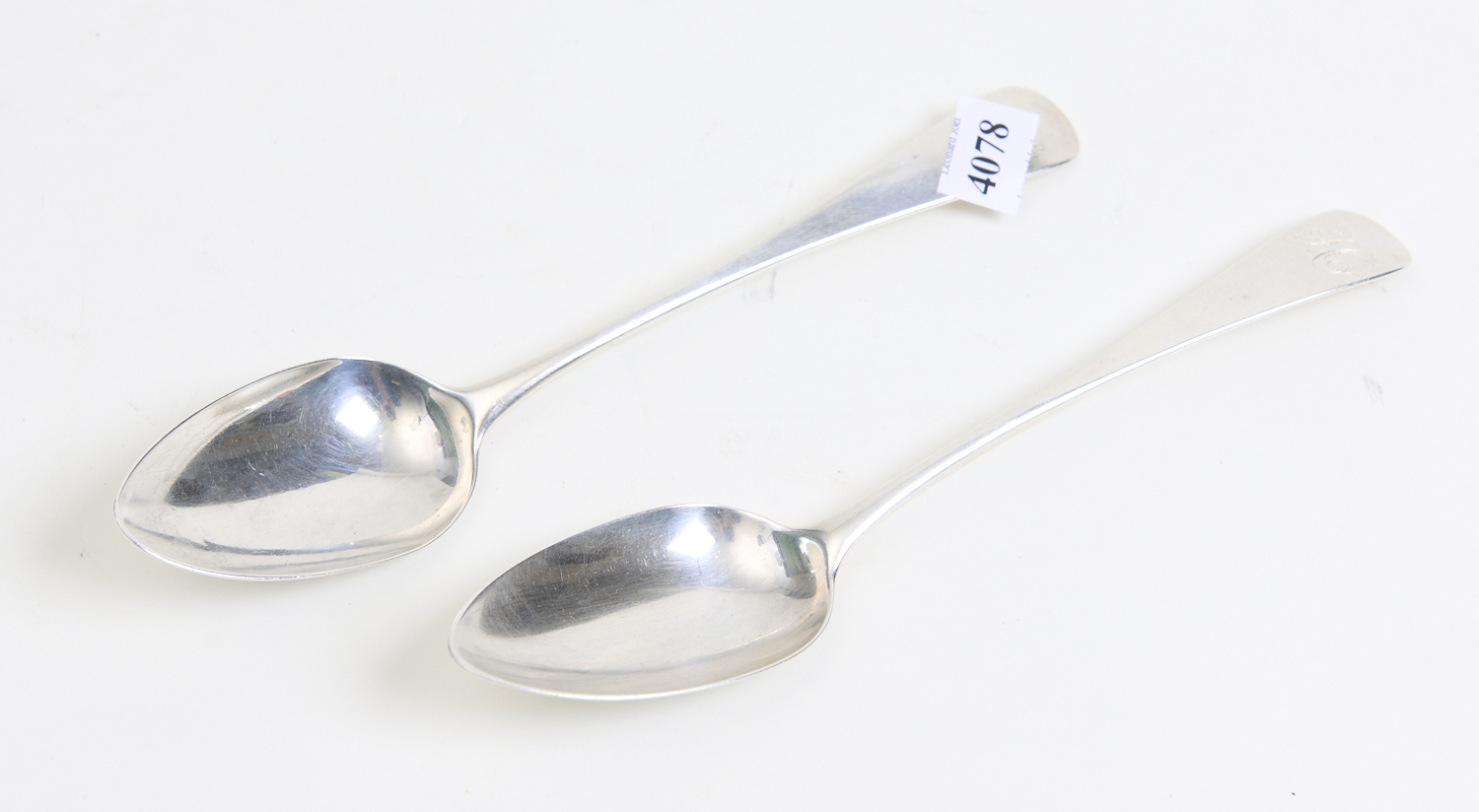 A PAIR OF GEORGIAN STERLING SILVER OLD ENGLISH PATTERN TABLE SPOONS, LONDON, 1797, 133G, LEONARD JOEL LOCAL DELIVERY SIZE: SMALL