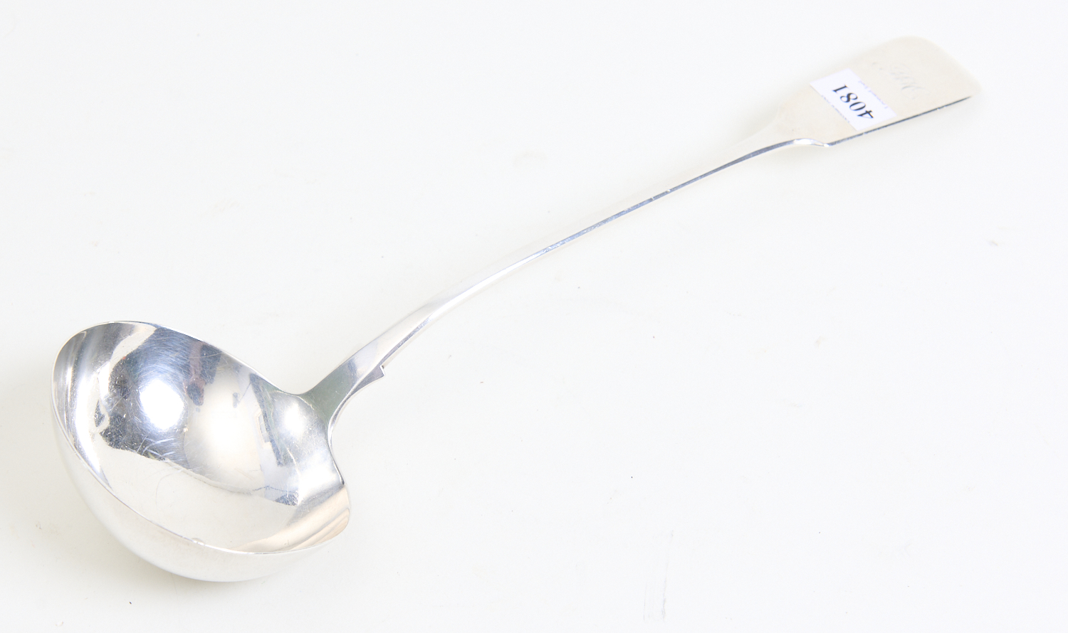 A STERLING SILVER FIDDLE PATTERN LADLE, LONDON, 1837, WILLIAM EATON (34 CM L), 188G, LEONARD JOEL LOCAL DELIVERY SIZE: SMALL