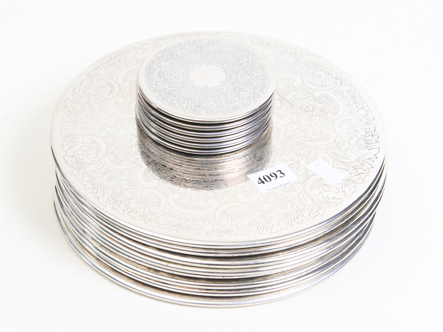 A SET OF STRACHAN SILVER PLATE COASTERS - EIGHT PLATE AND SIX DRINKS DIA.20CM, LEONARD JOEL LOCAL DELIVERY SIZE: SMALL