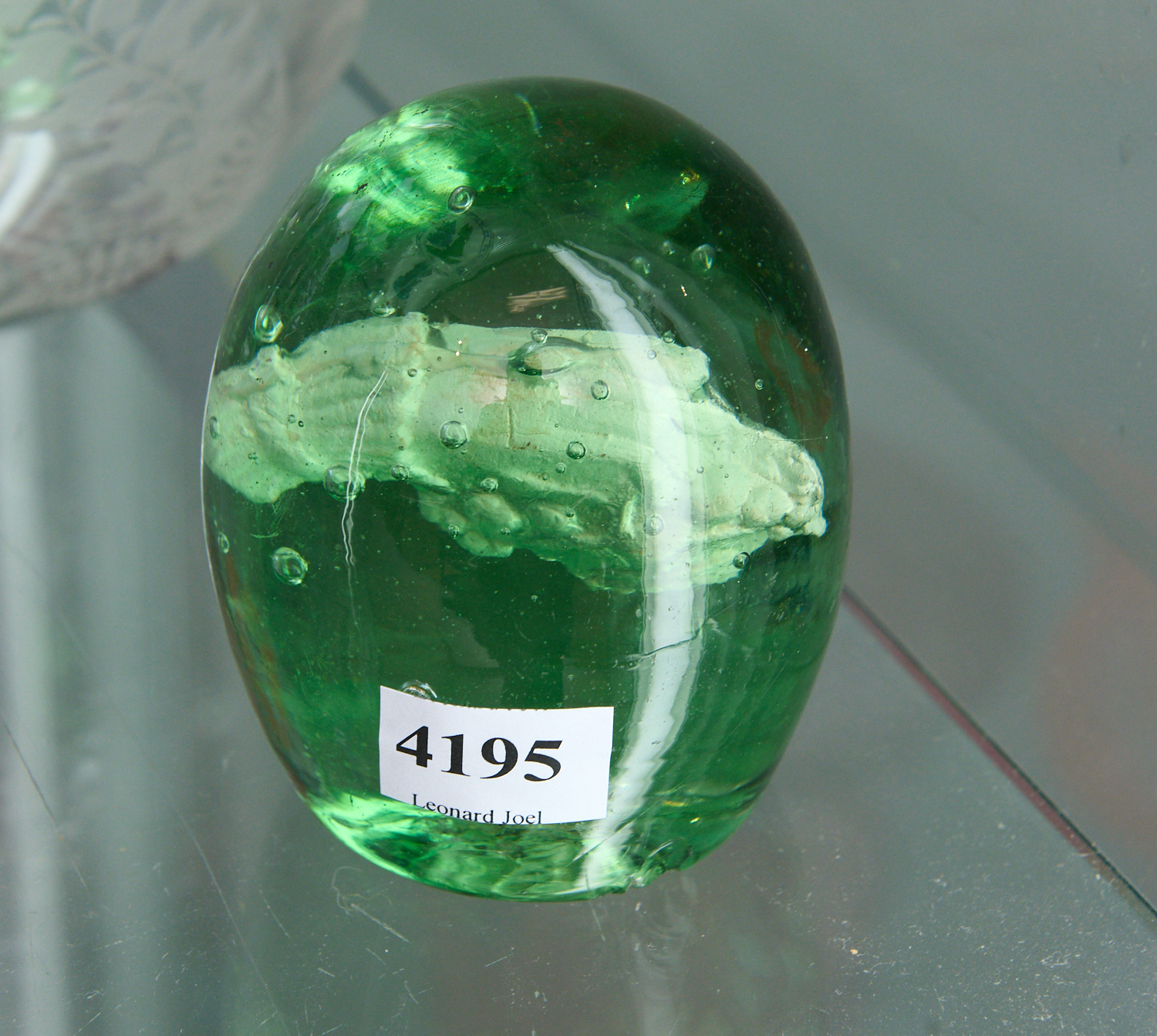 A VICTORIAN GLASS DUMP WITH HAND AND BASKET FORM INCLUSION, LEONARD JOEL LOCAL DELIVERY SIZE: SMALL