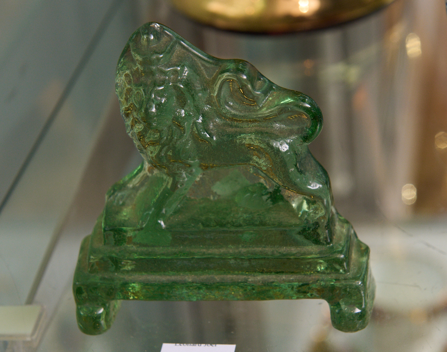 A GREEN VICTORIAN GLASS LION FORM PAPERWEIGHT H.12CM, LEONARD JOEL LOCAL DELIVERY SIZE: SMALL