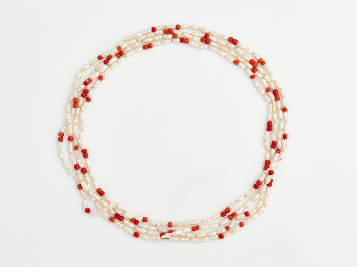 A LONG STRAND OF FRESHWATER PEARLS AND CORAL BEADS, APPOXIMATELY 1820MM