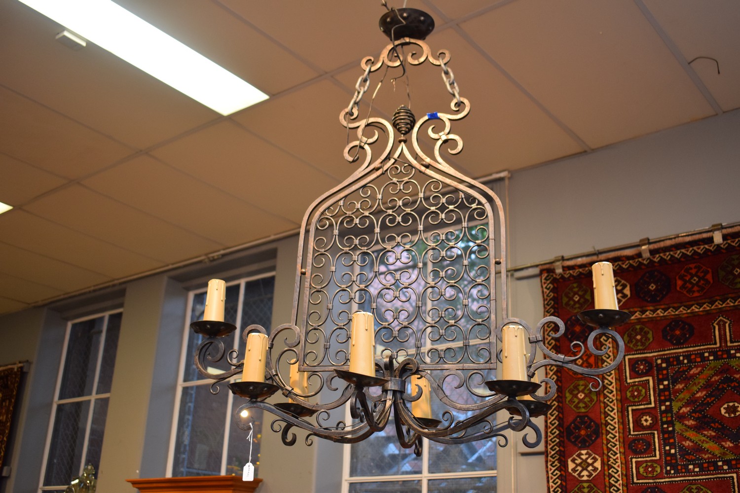 French Wrought Iron 8 Light Chandelier, c.1940's (A/F) (108H x 96D CM) (PLEASE NOTE THIS HEAVY ITEM MUST BE REMOVED BY CARRIERS AT THE CUSTOMER'S EXPENSE. LEONARD JOEL STAFF CANNOT ASSIST CARRYING THIS ITEM) (X-LARGE ITEM)