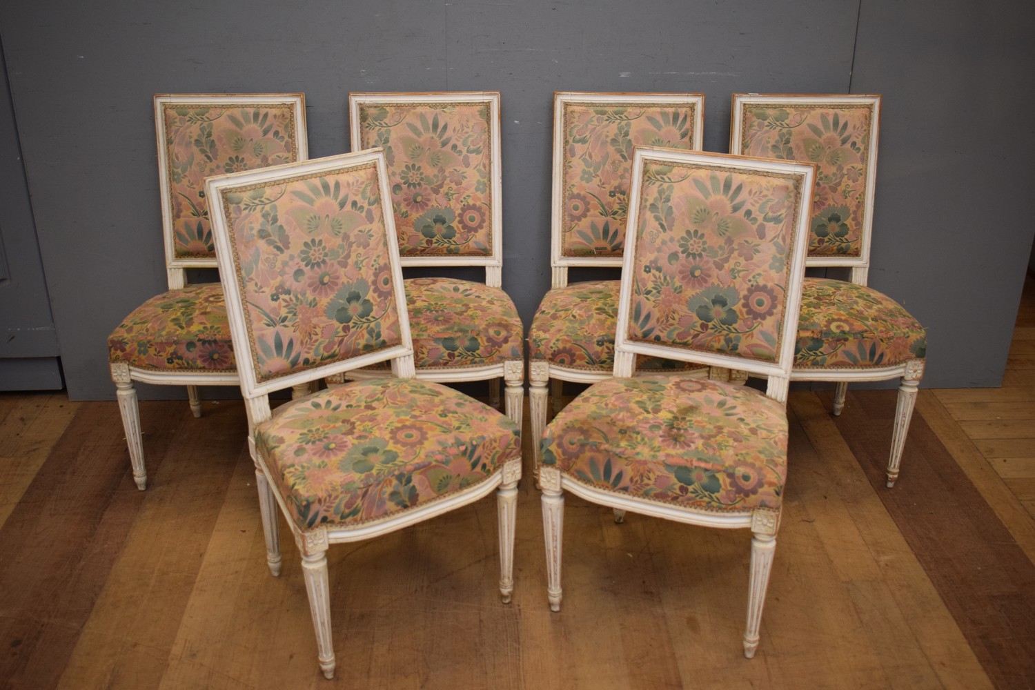 Set of 6 19th Century French Louis XVI Dining Chairs, c.1880's (A/F) (94H x 51W x 50D CM) (LEONARD JOEL DELIVERY SIZE: LARGE)