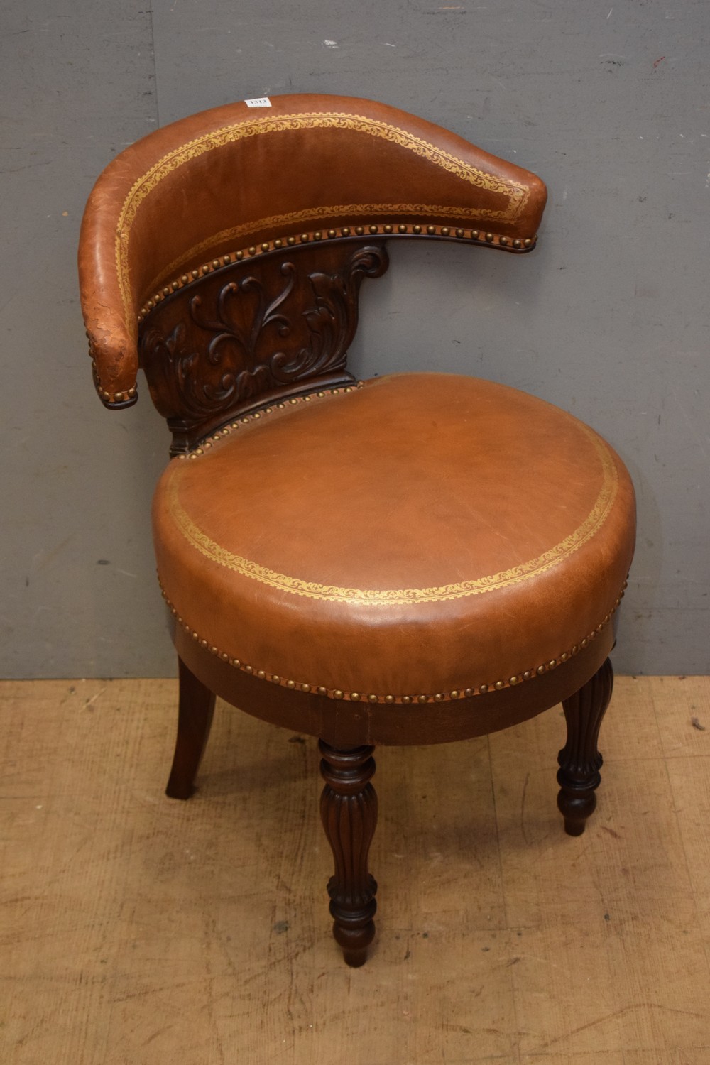 French Louis Philipped Leather Side Chair, c.1840's (A/F) (80H x 51W x 52D CM)) (LEONARD JOEL DELIVERY SIZE: LARGE)