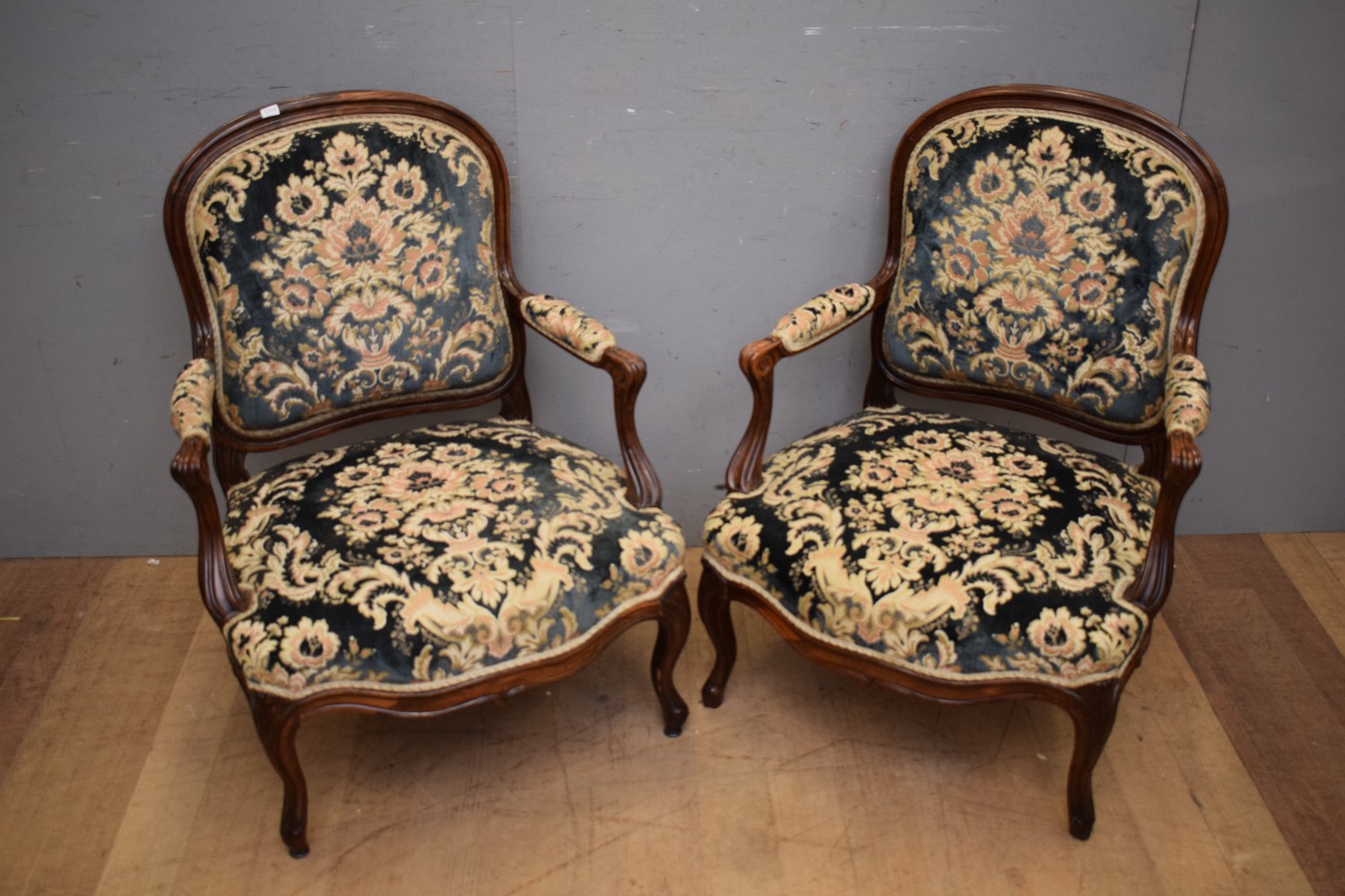 Pair of Mid 19th Century Louis XV Rosewood Fauteuils, c.1860's (A/F) (94H x 64W x 60D CM) (PLEASE NOTE THIS HEAVY ITEM MUST BE REMOVED BY CARRIERS AT THE CUSTOMER'S EXPENSE. LEONARD JOEL STAFF CANNOT ASSIST CARRYING THIS ITEM) (X-LARGE ITEM)