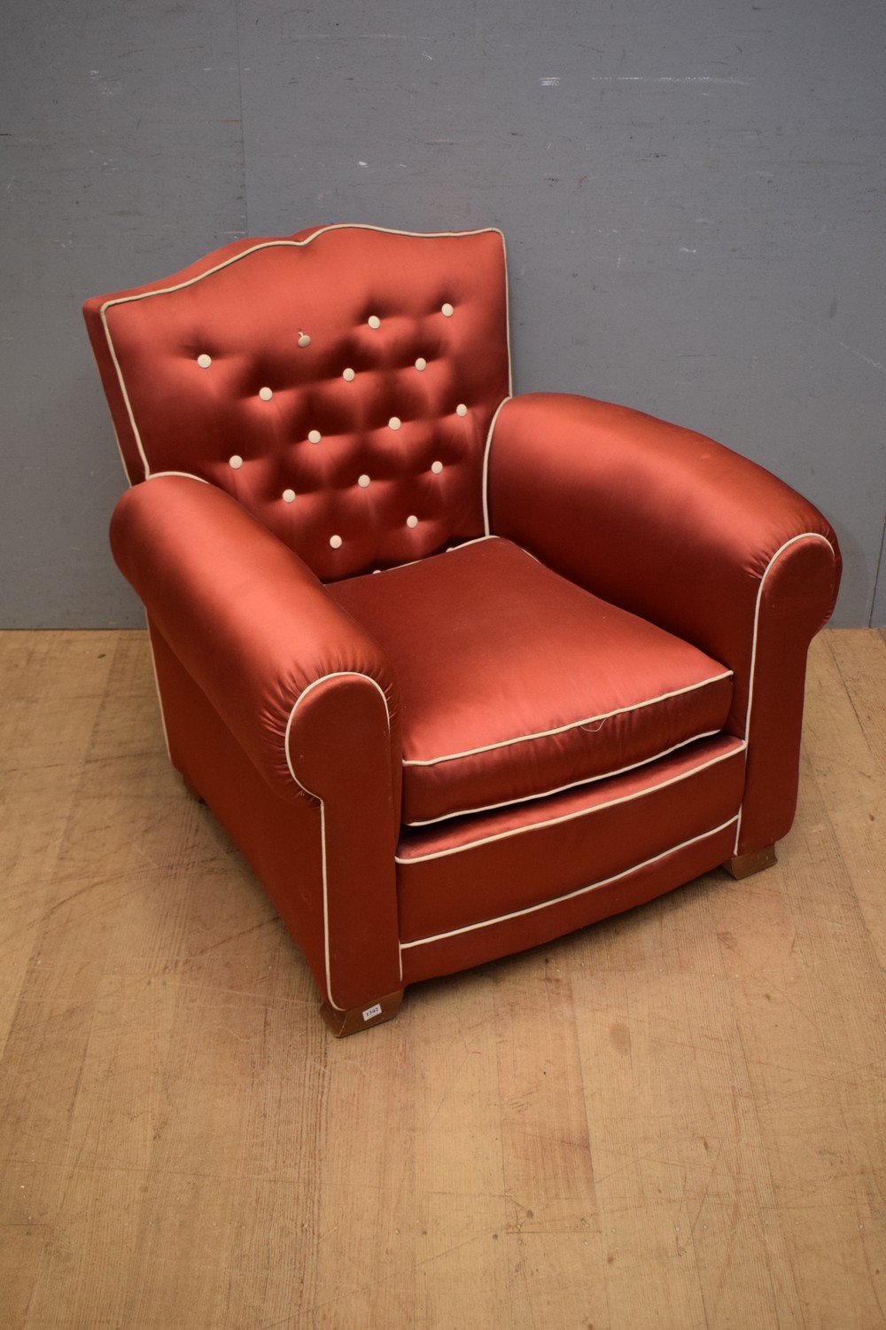 Original French Art Deco Club Chair in Original Pink Silk, c.1930's (A/F) (80H x 85W x 89D CM) (PLEASE NOTE THIS HEAVY ITEM MUST BE REMOVED BY CARRIERS AT THE CUSTOMER'S EXPENSE. LEONARD JOEL STAFF CANNOT ASSIST CARRYING THIS ITEM) (X-LARGE ITEM)