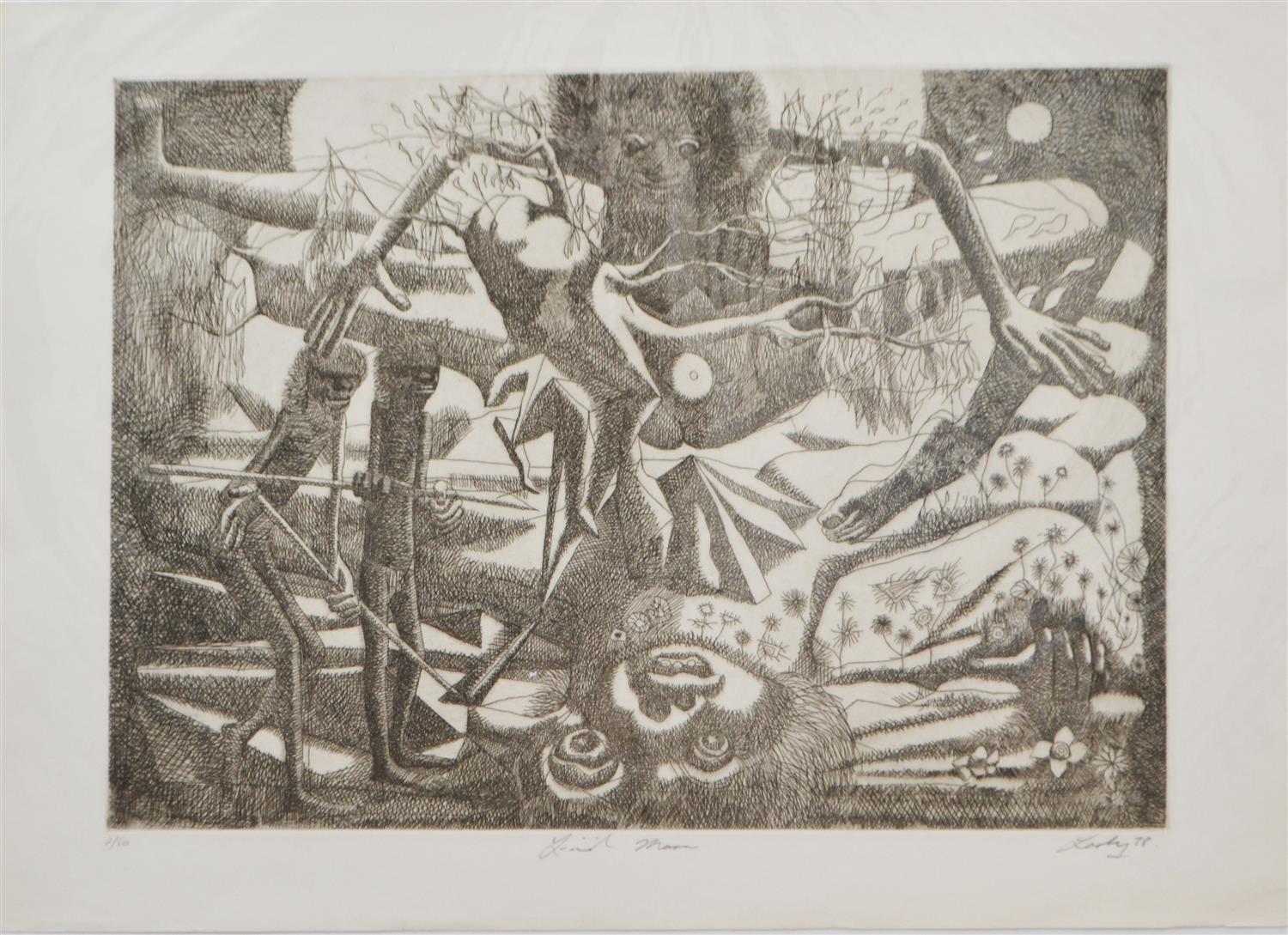 KEITH LOOBY, FIRST MOON 1978, ETCHING 2/50, 45 X 60.5CM
