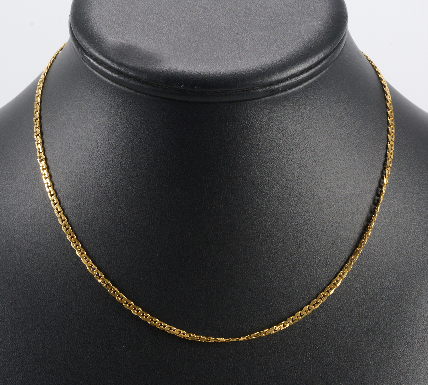 A TRACE CHAIN IN 18CT GOLD, TOTAL LENGTH 410MM, 8.70GMS