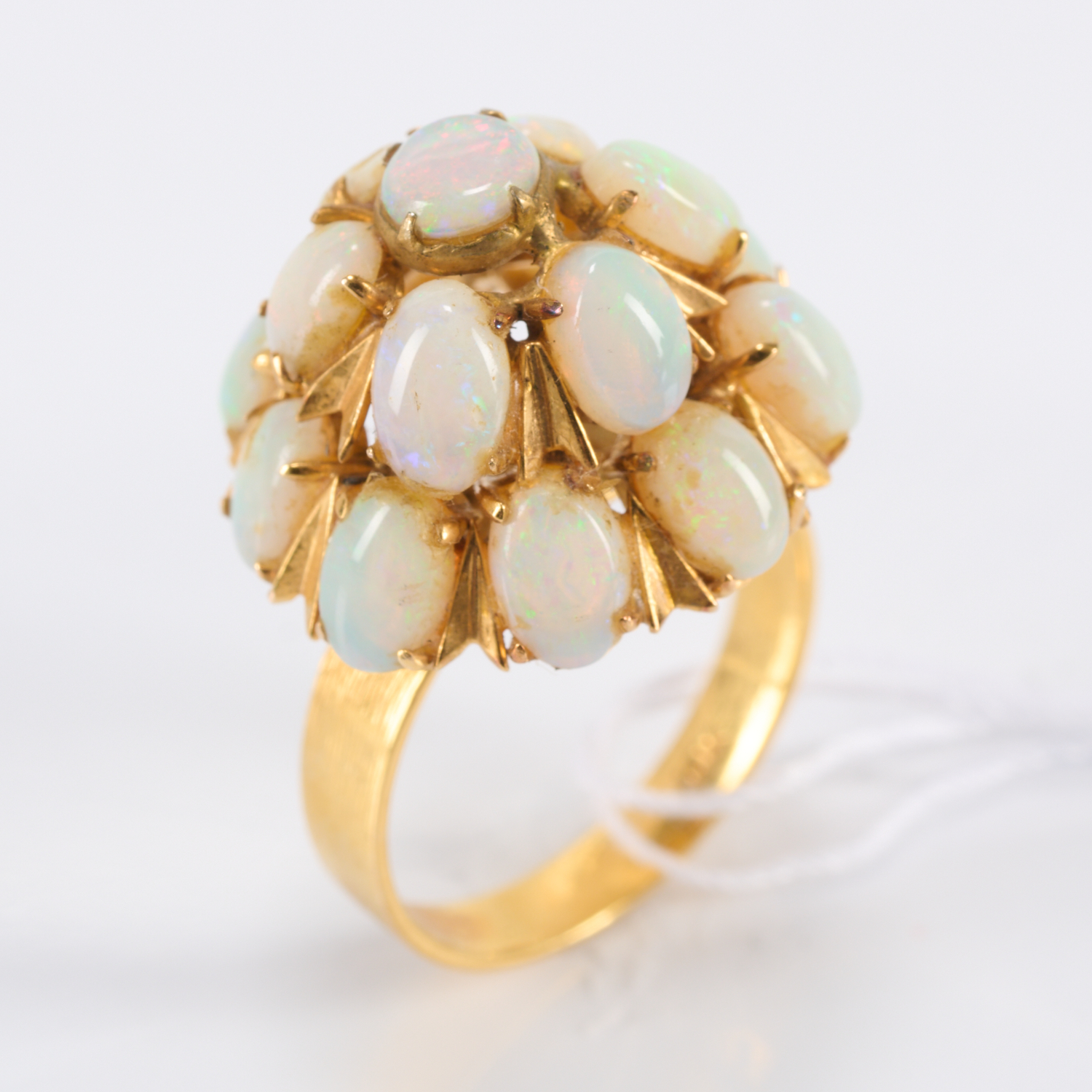AN OPAL CLUSTER DRESS RING IN 9CT GOLD, RING SIZE M/N, 6.5GMS