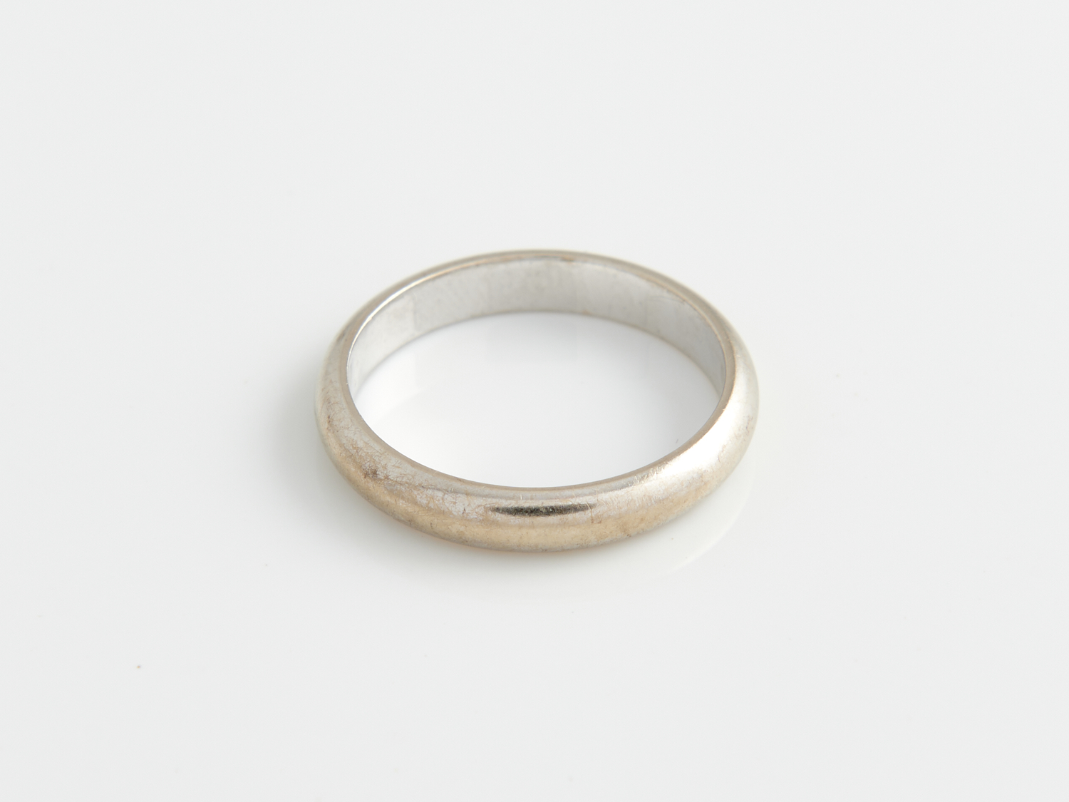 A BAND IN 18CT WHITE GOLD, RING SIZE I, 2.8GMS