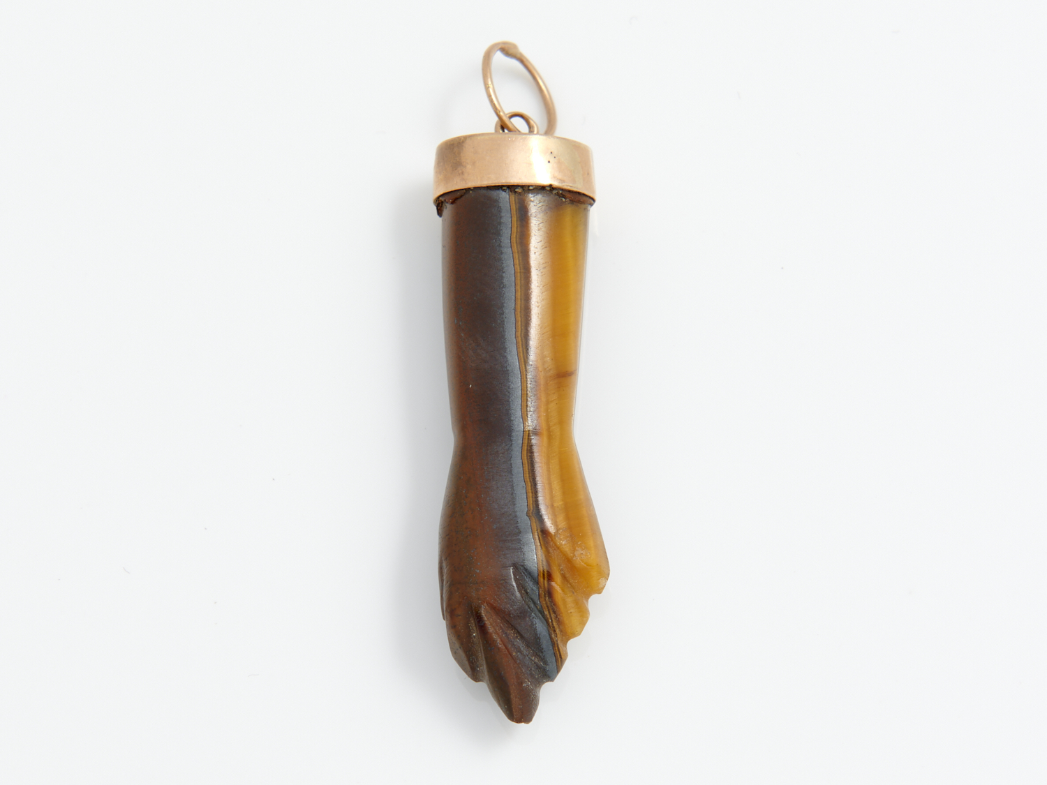 A TIGERS EYE FIGA PENDANT TO 14CT GOLD FITTING, 40MM
