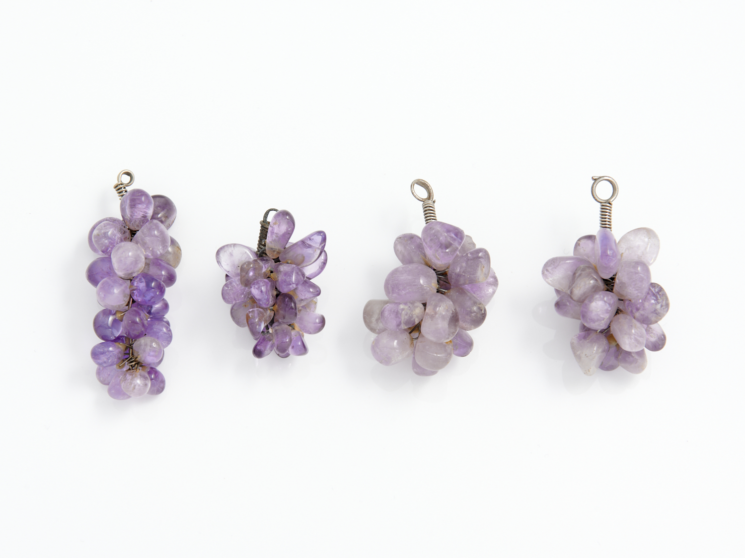 A COLLECTION OF FOUR TUMBLED AMETHYST PENDANTS