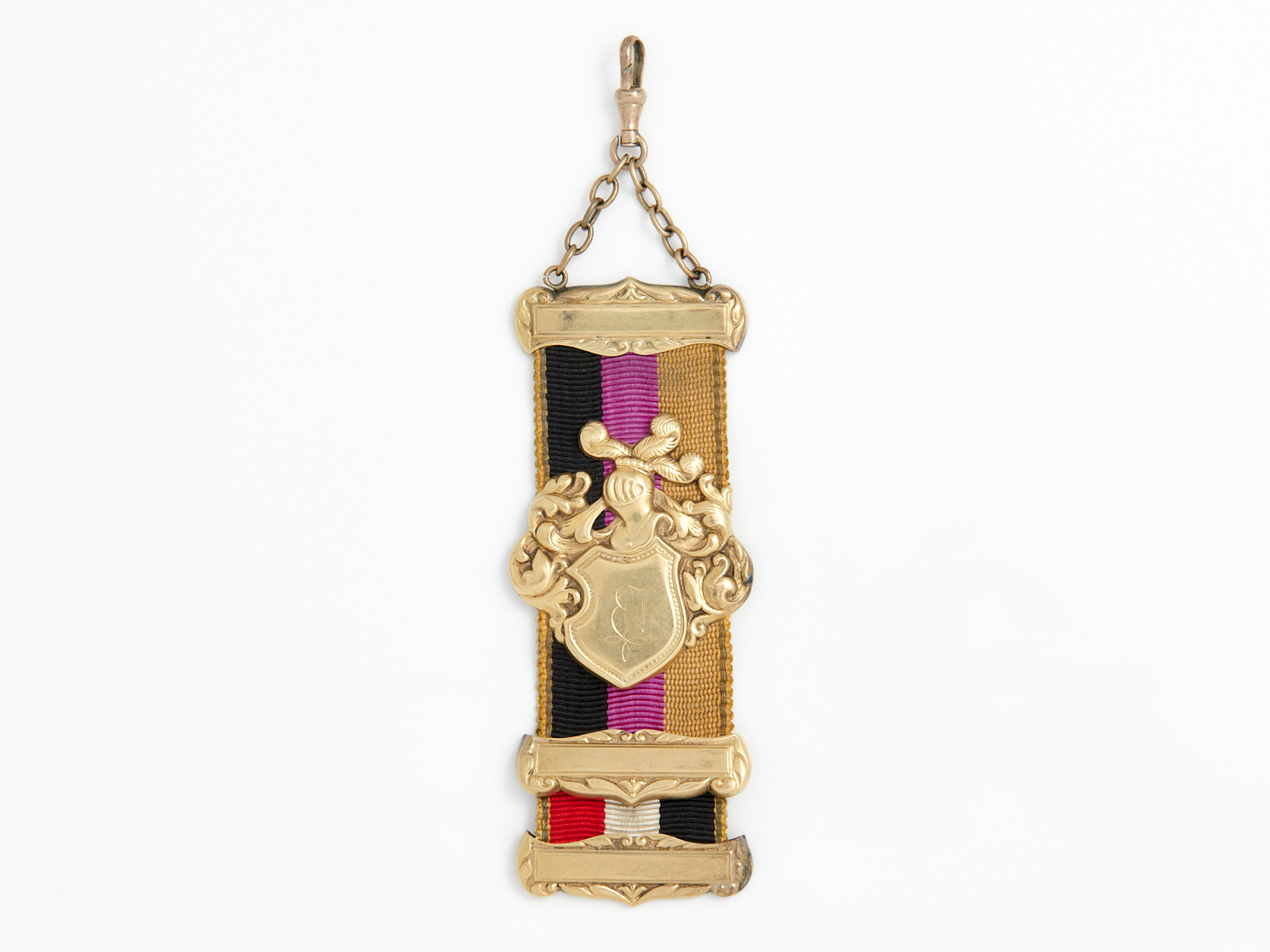 AN ANTIQUE FOB MEDALLION TO FITTINGS IN 14CT GOLD