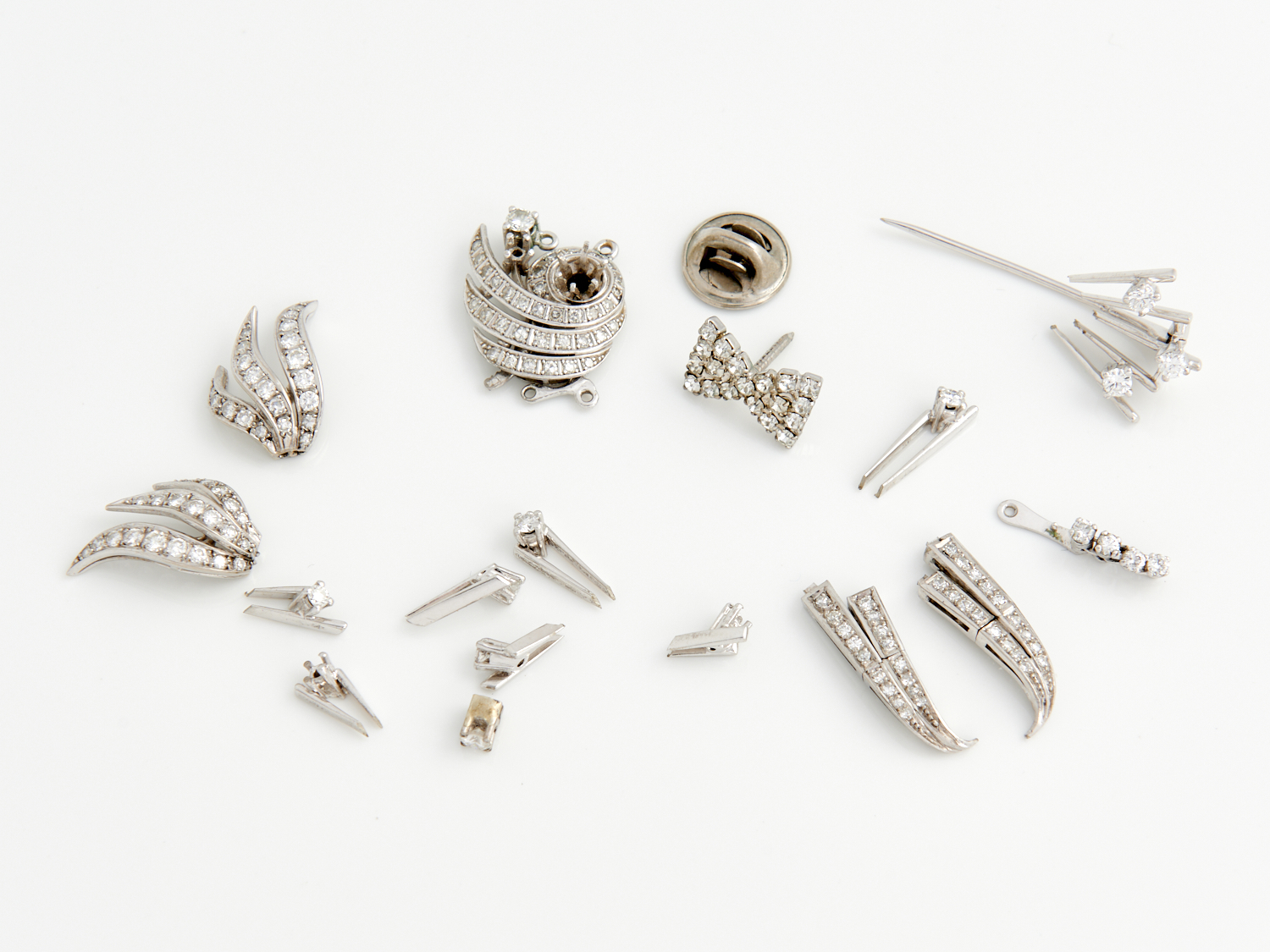 A COLLECTION OF FINDINGS INCLUDING THIRTEEN DIAMOND SET AND ONE CUBIC ZIRCONIA SET