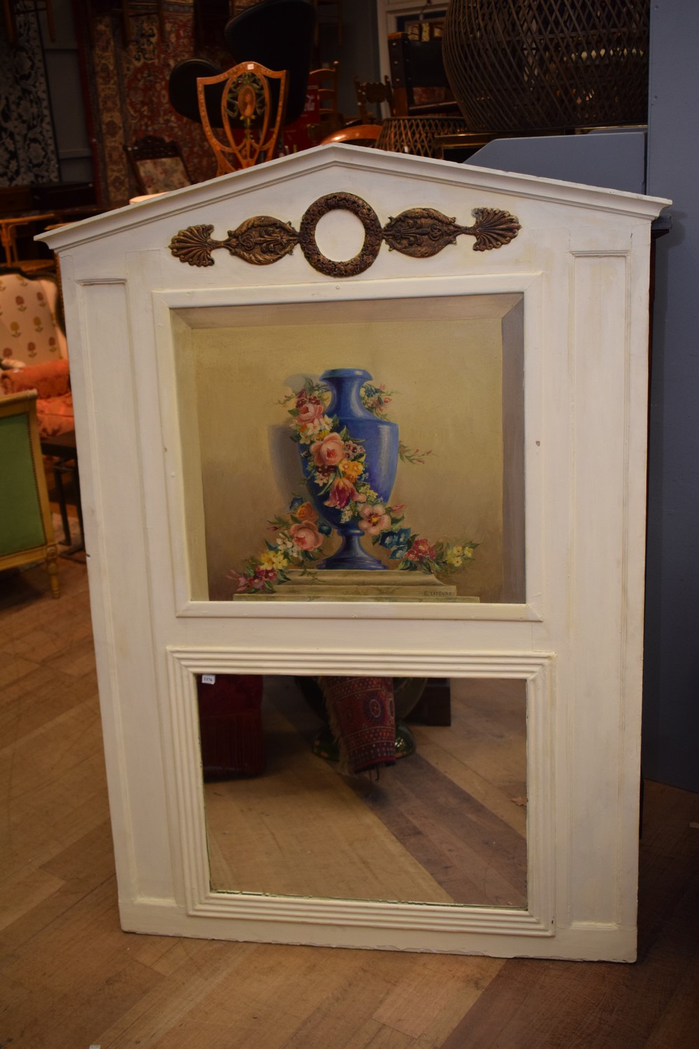 18TH CENTURY FRENCH DIRECTOIRE TRUMEAU MIRROR, C,1790'S (A/F) (164H x 119W CM) (PLEASE NOTE THIS HEAVY ITEM MUST BE REMOVED BY CARRIERS AT THE CUSTOMER'S EXPENSE. LEONARD JOEL STAFF CANNOT ASSIST CARRYING THIS ITEM) (X-LARGE ITEM)